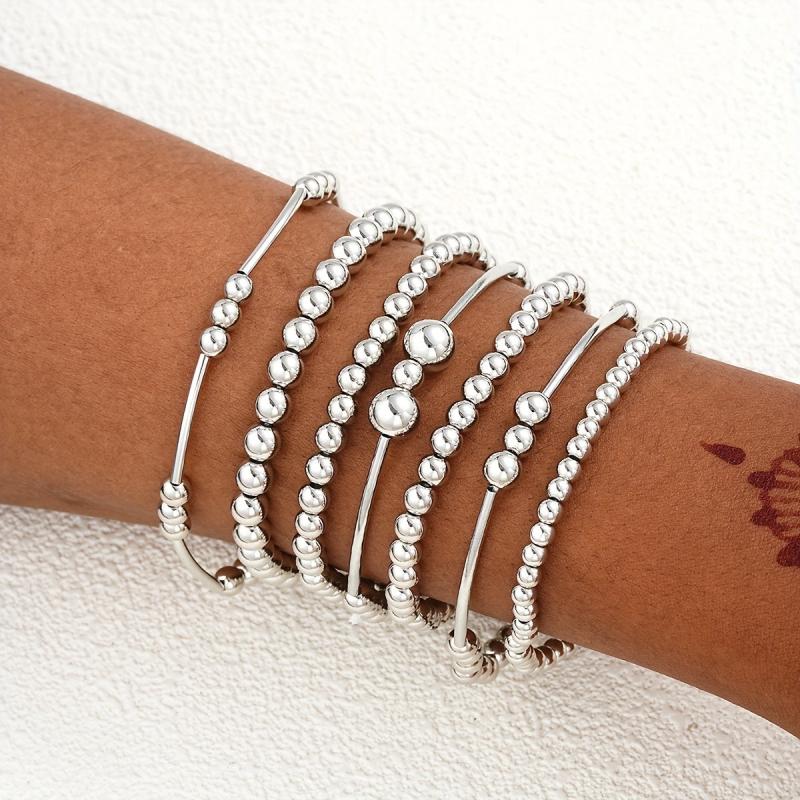 Elevate your style with this 7-piece beaded stacked bracelet set designed for daily wear, dating, vacation, parties, anniversaries, and holidays.