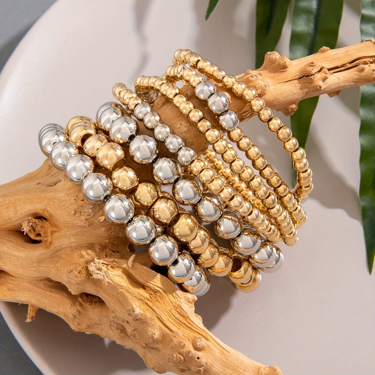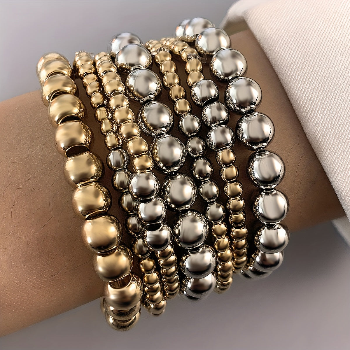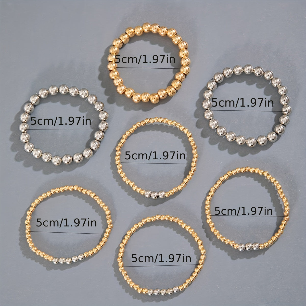 This set includes 7 minimalist style rice beads beaded bracelets with a geometric layer design, perfect hand jewelry for women.