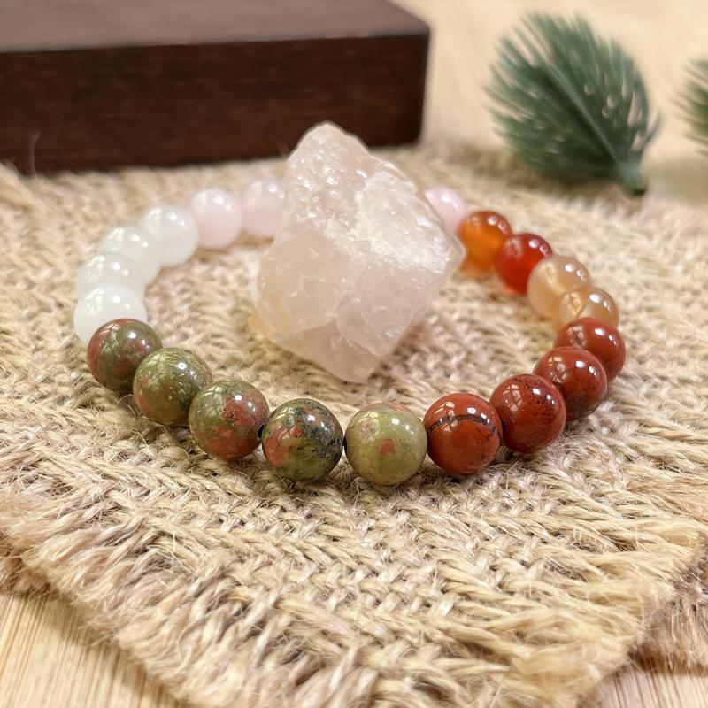 Embrace prosperity and self-love with this natural stone bracelet that embodies the energy of the heart chakra. Perfect for adding a bohemian touch to your style.