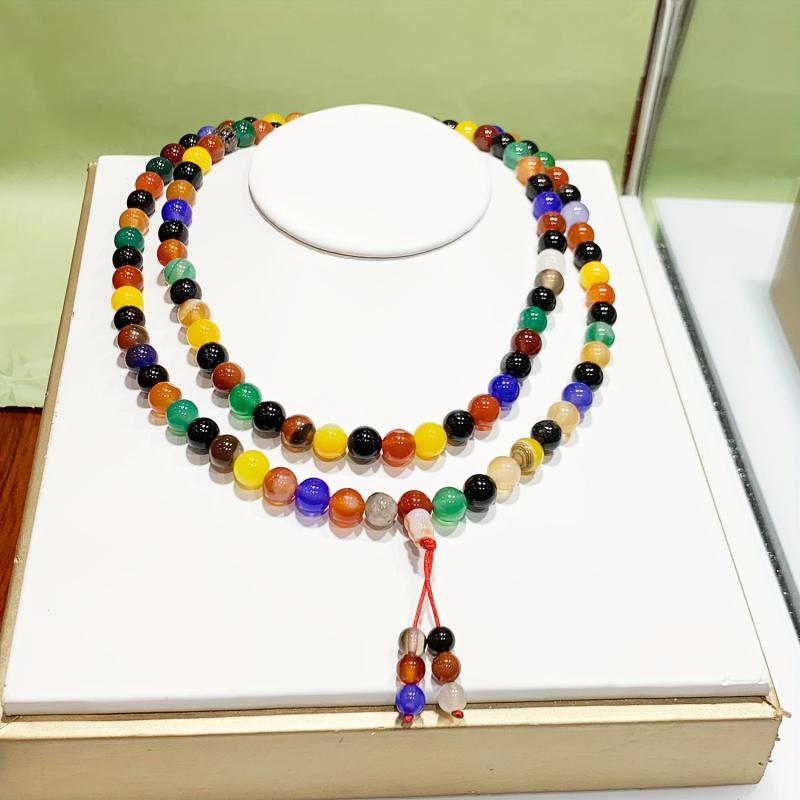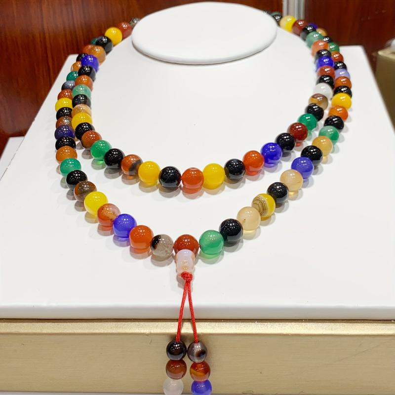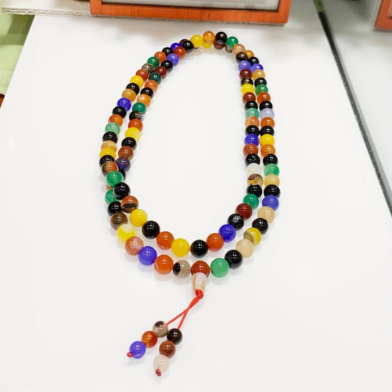 This adjustable cord bracelet features multicolor agate beads and natural rock crystal. It is handcrafted and perfect for all seasons, suitable for banquets and casual attire events.