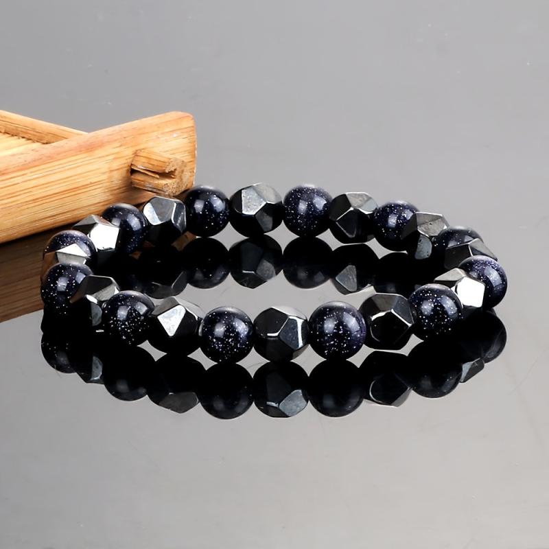 Add a touch of elegance to your look with this natural sandstone beaded bracelet. Perfect for daily wear or vacation outfits, this geometric accessory is versatile and stylish.
