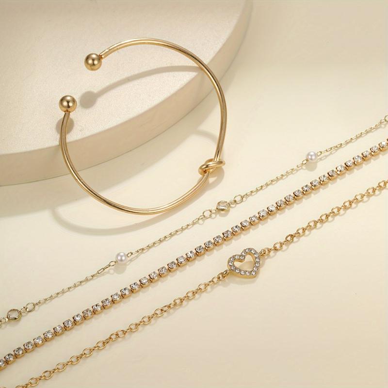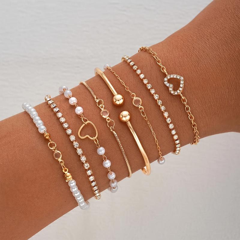 Elevate your style with this set of 8 snake chain bracelets featuring faux pearls, rhinestones, and vintage alloy. Perfect for daily wear or as a gift for Valentine's Day. Suitable for all seasons.