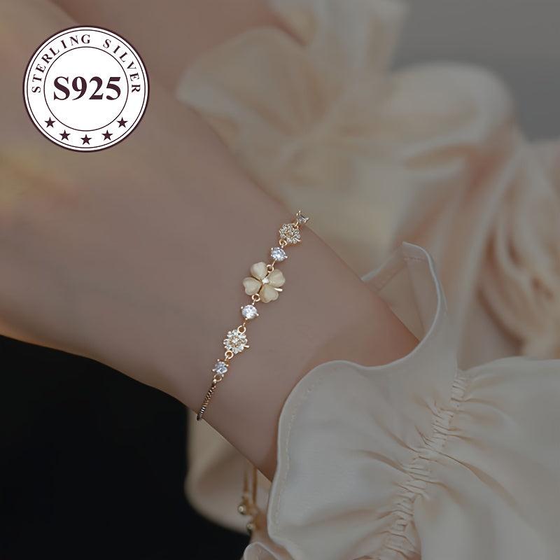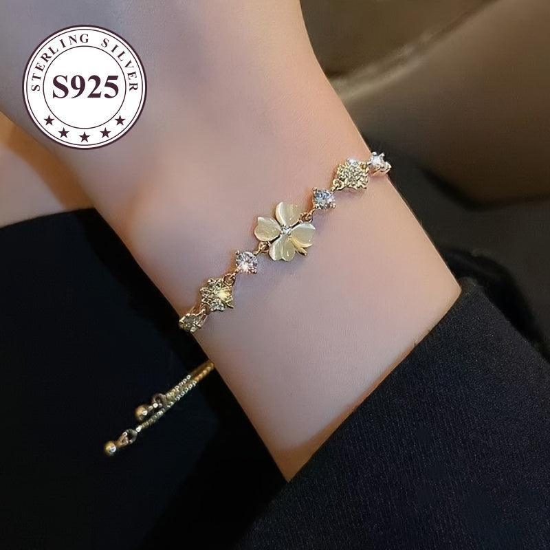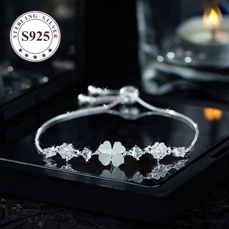 Embrace the forest style with this delicate and versatile high-end jewelry set. Perfect as a Mother's present, this hypoallergenic bracelet showcases a four-leaf clover design.