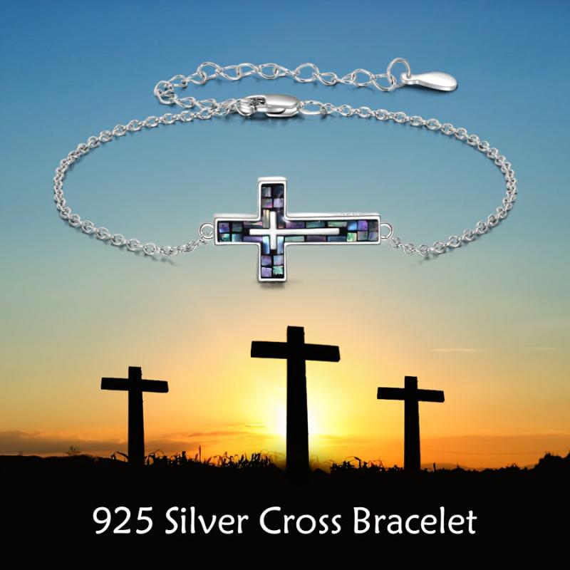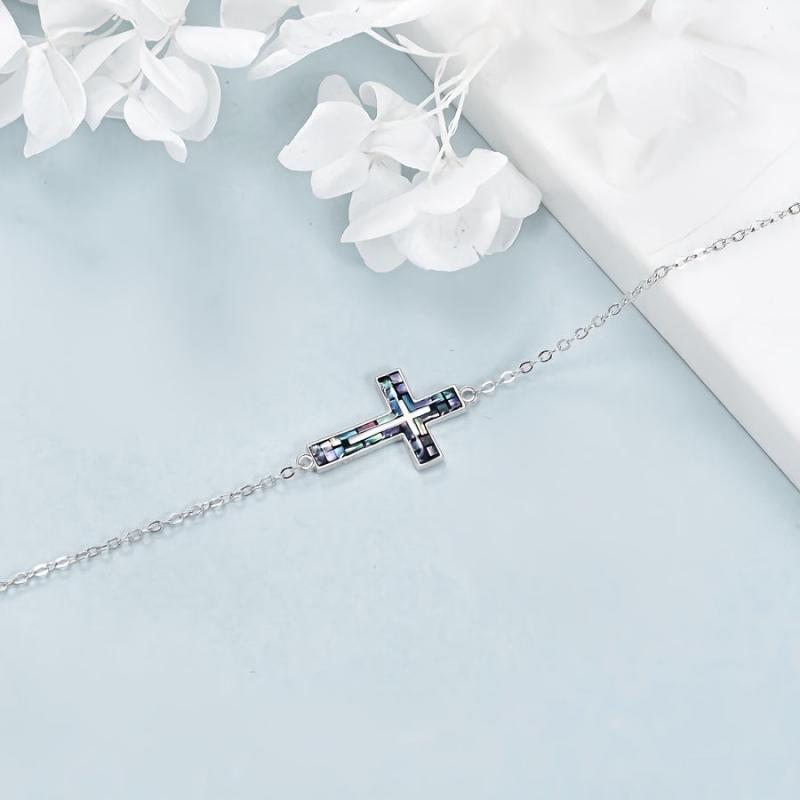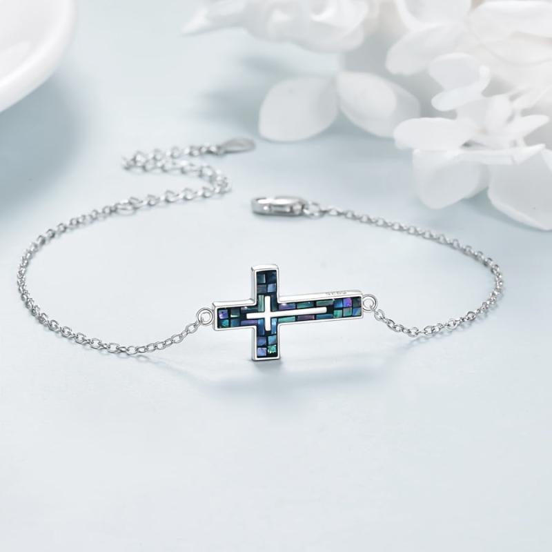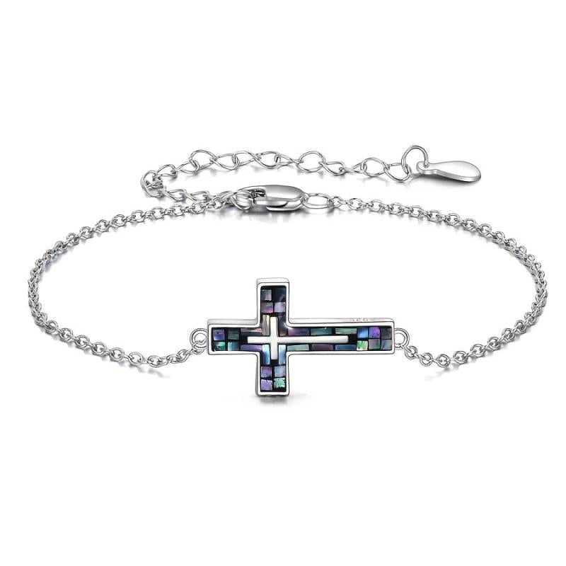 Stunning YFN cross bracelet made of 925 sterling silver with synthetic abalone shell. Perfect gift for both men and women.