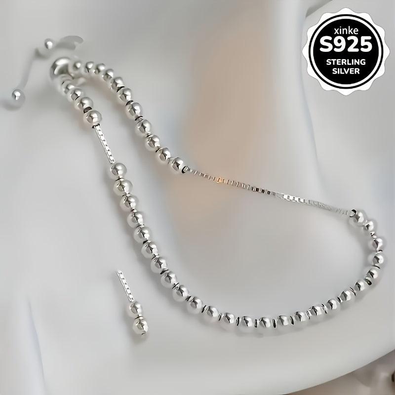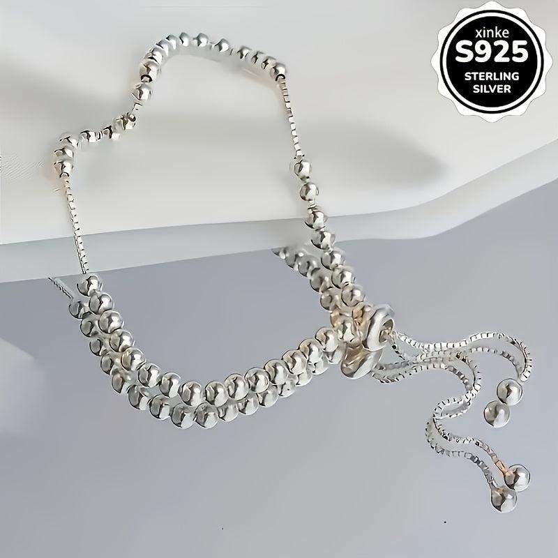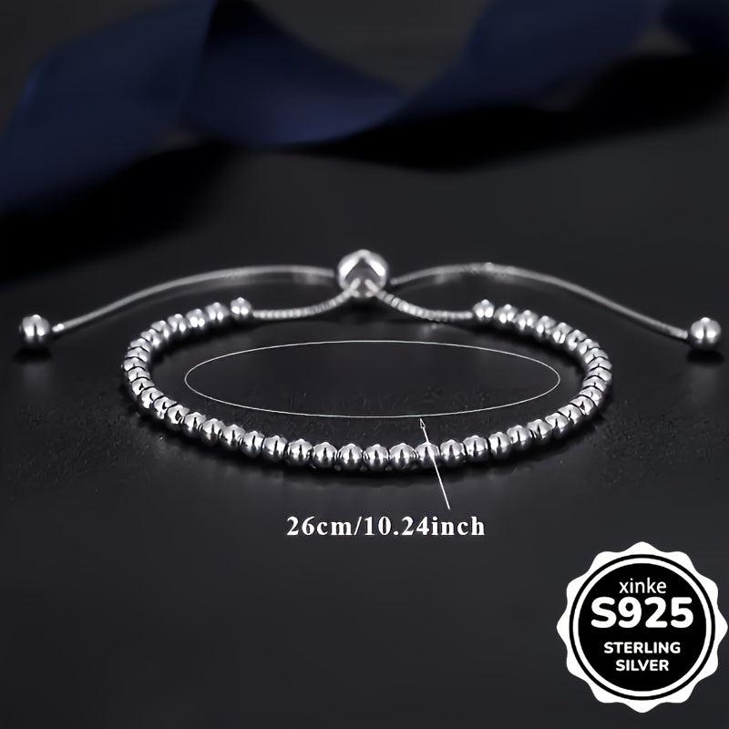 This 925 Sterling Silver adjustable beaded bracelet is durable, hypoallergenic, and perfect for women, mothers, and friends. It has a boho style with sparkling charms, ideal for everyday wear.