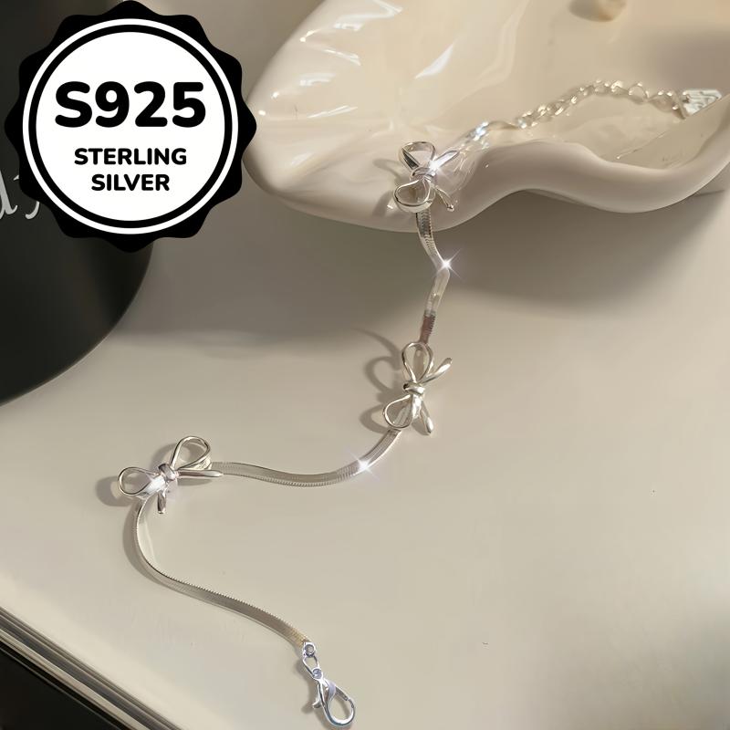 This 925 sterling silver bow bracelet is perfect for all seasons and gifting. It features minimalist design with sparkling accents, making it versatile for casual attire.