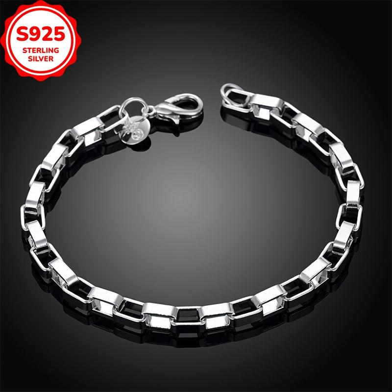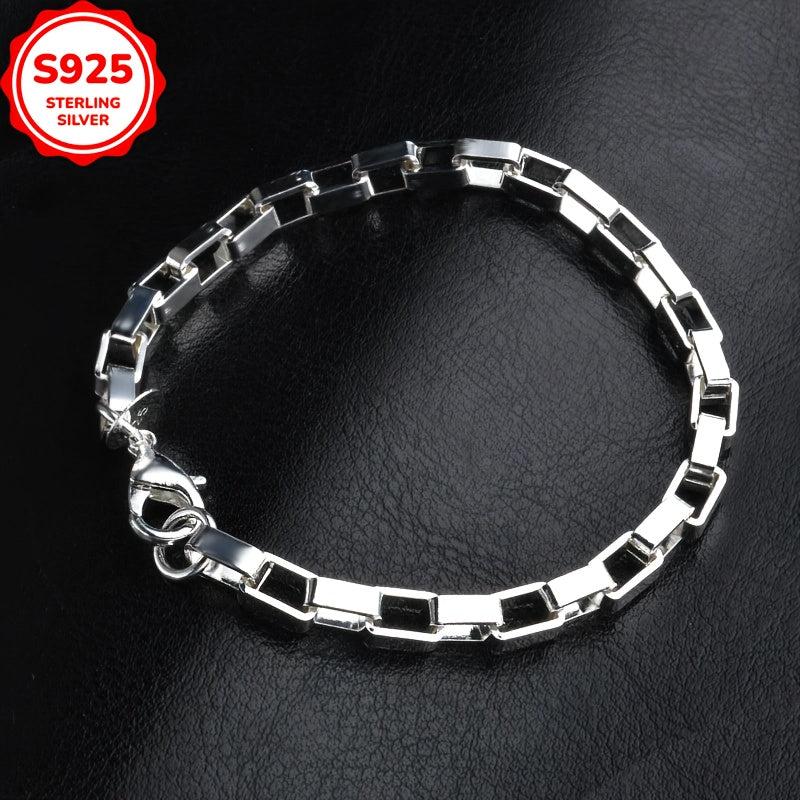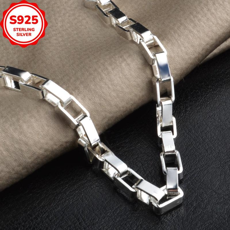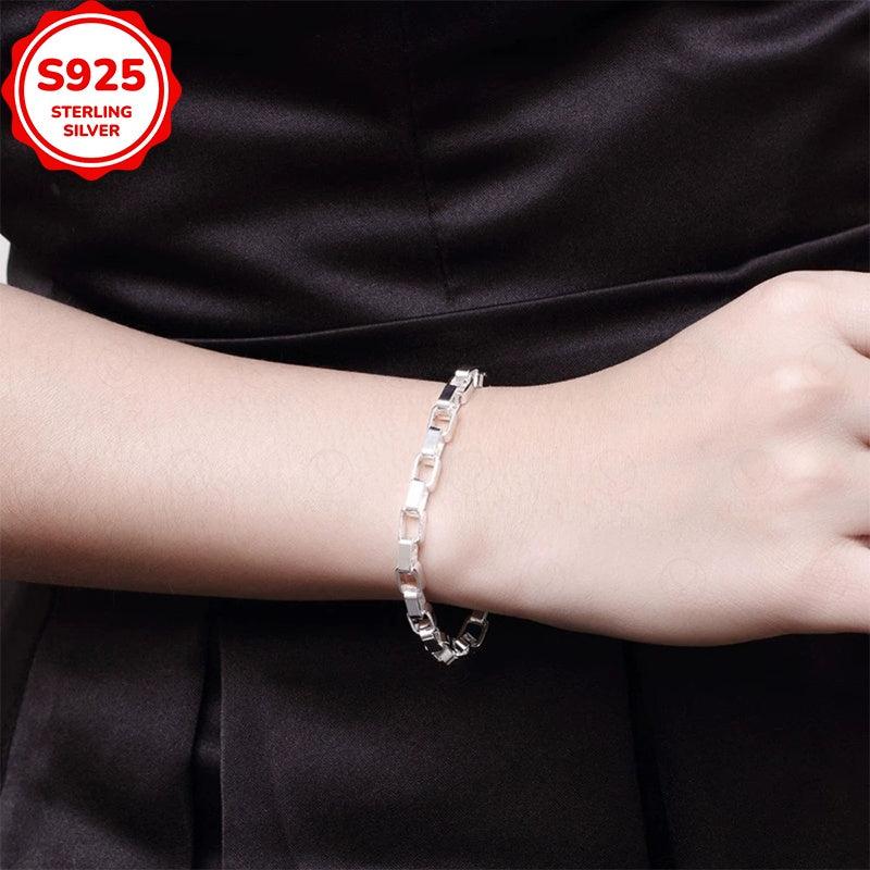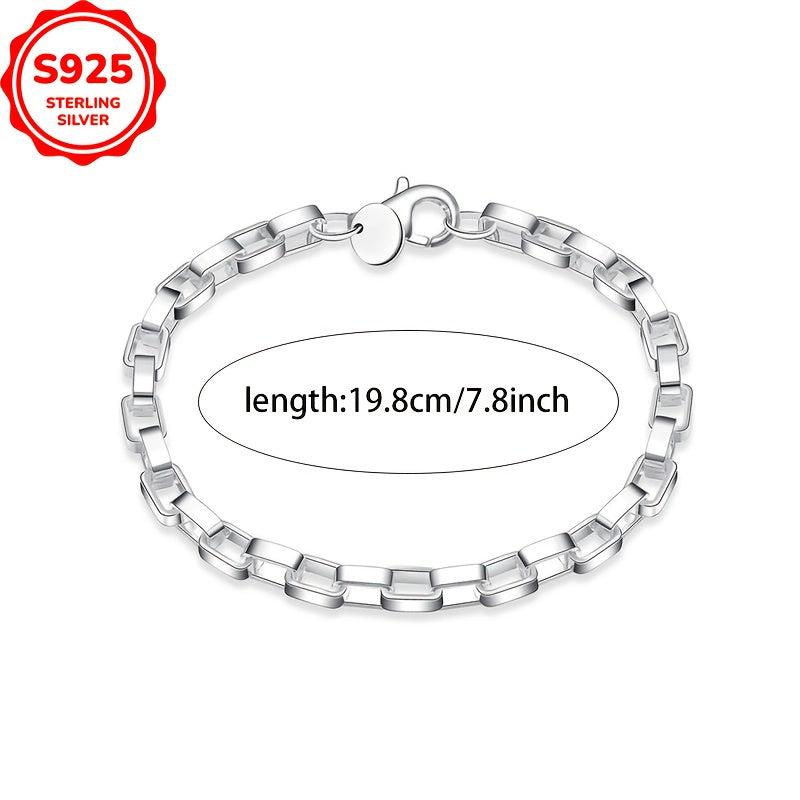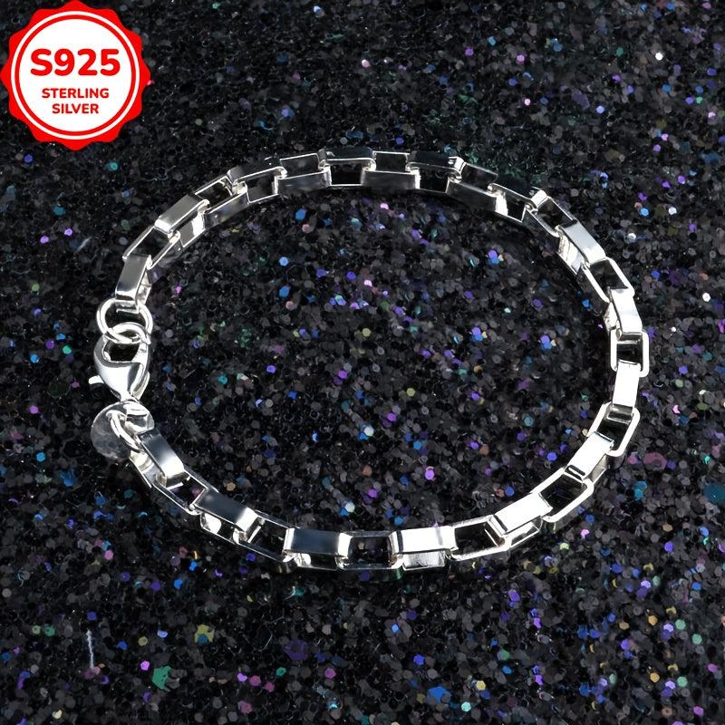 This long box chain bracelet is crafted from 925 sterling silver, making it perfect for everyday wear. Its durability and tarnish resistance will keep it looking great all season long.