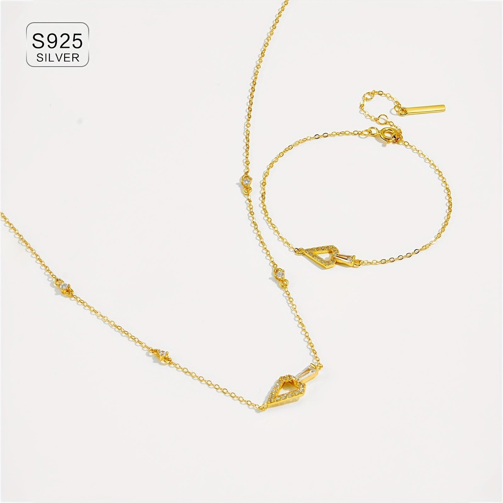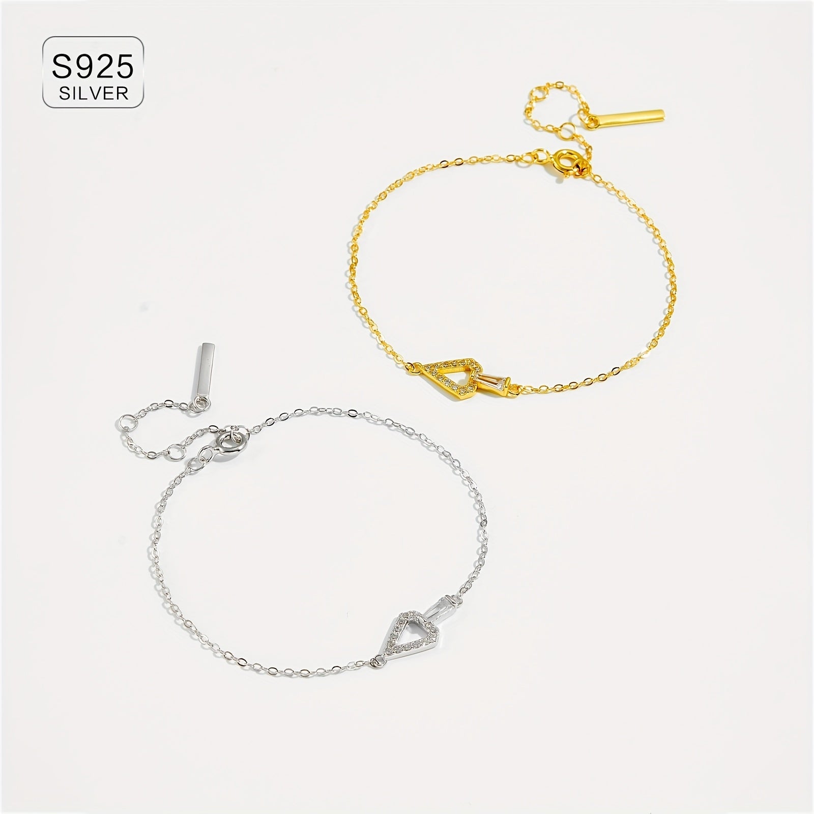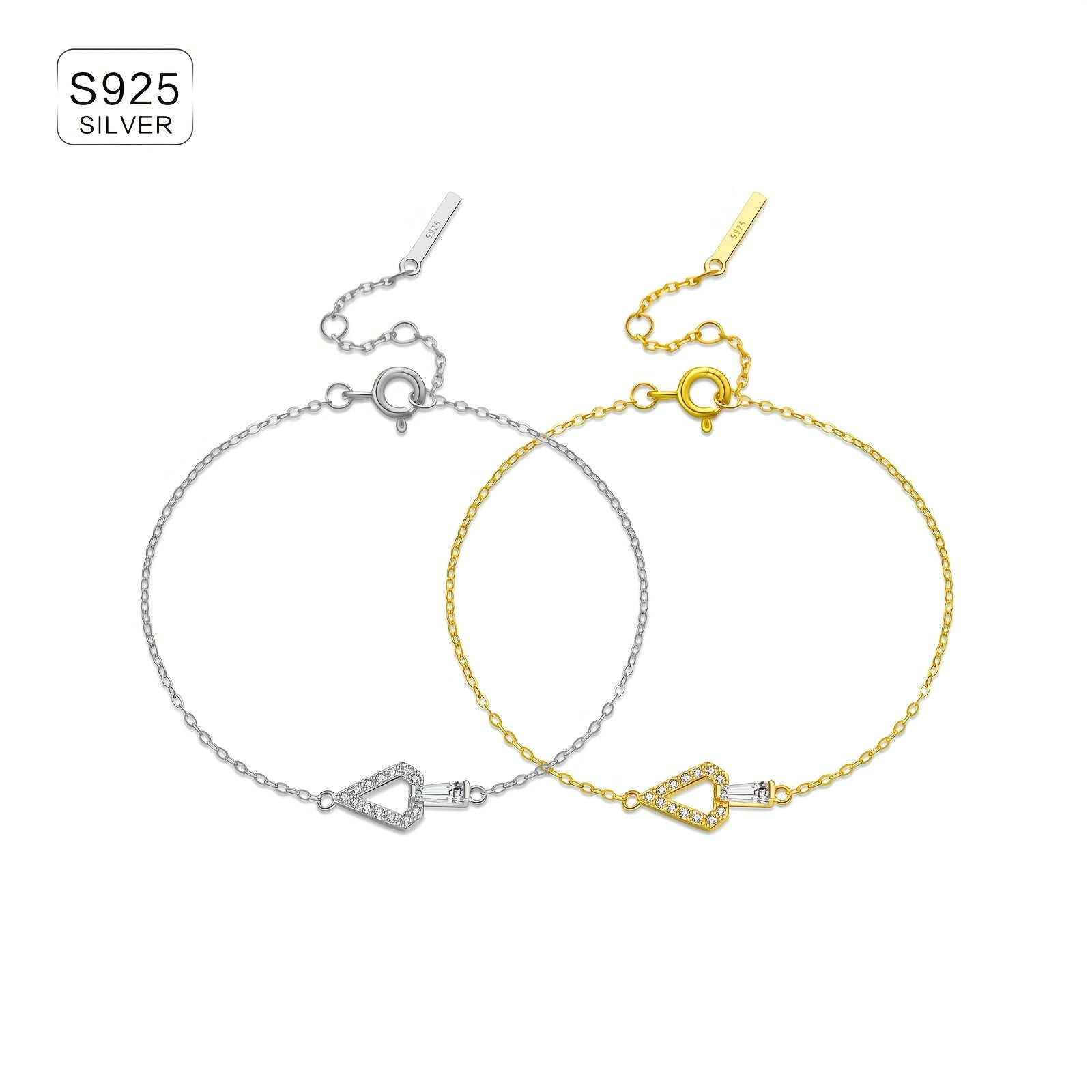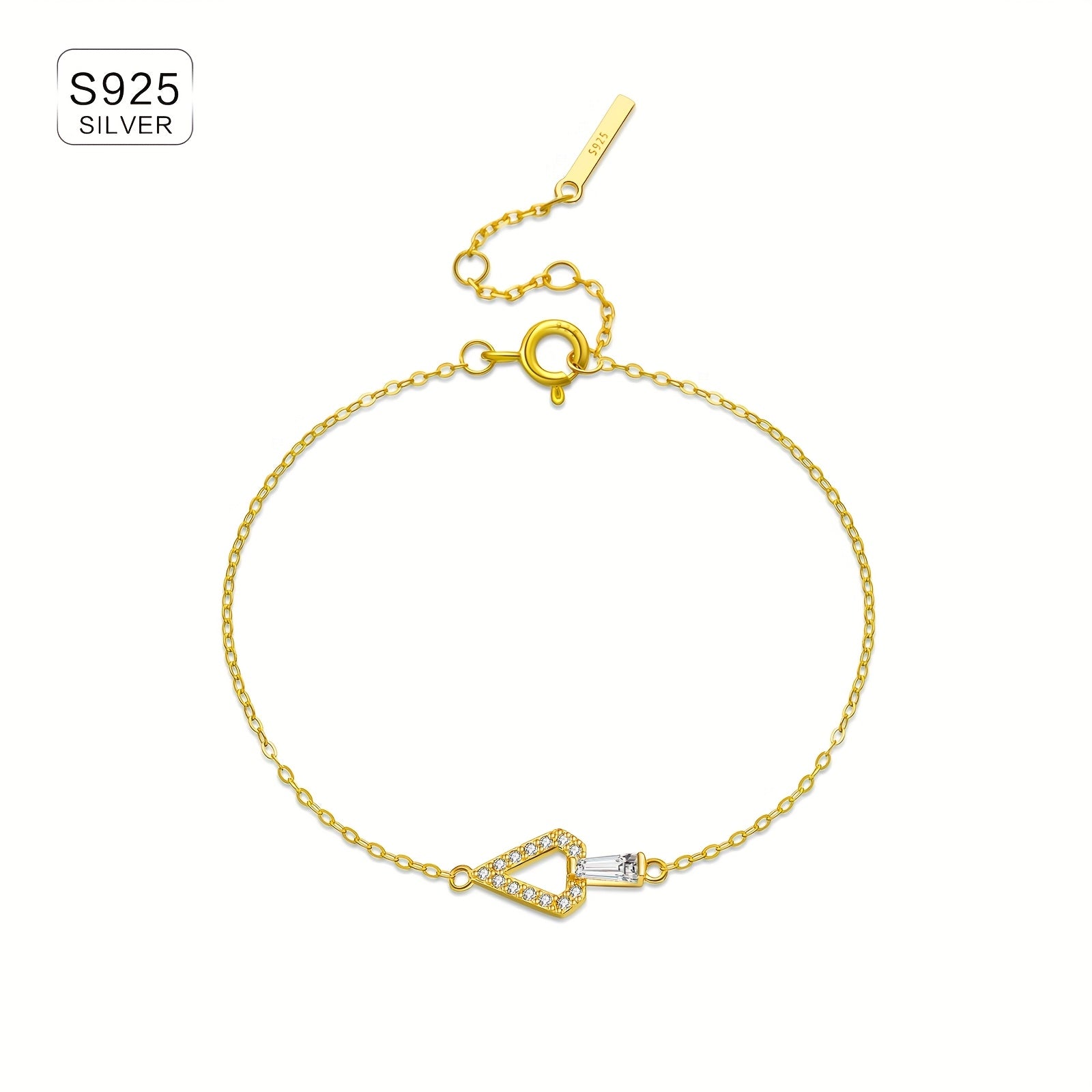 This stunning bracelet is made of 925 sterling silver with an 18k golden plated finish. It features a hollowed out triangle design adorned with sparkling synthetic zirconia, making it a perfect gift for any occasion.