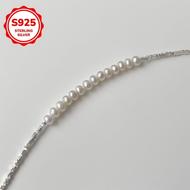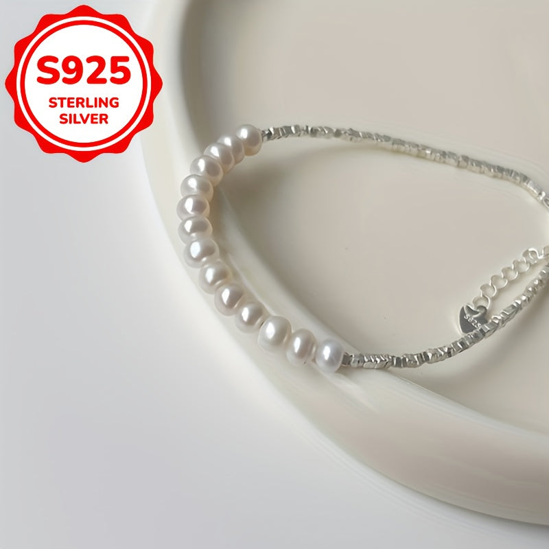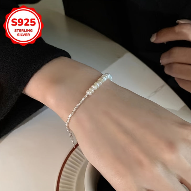 This elegant bracelet is made of 925 sterling silver, featuring smooth pearls and a sleek beaded chain. Perfect gift for Valentine's, Mother's Day, or any special occasion.