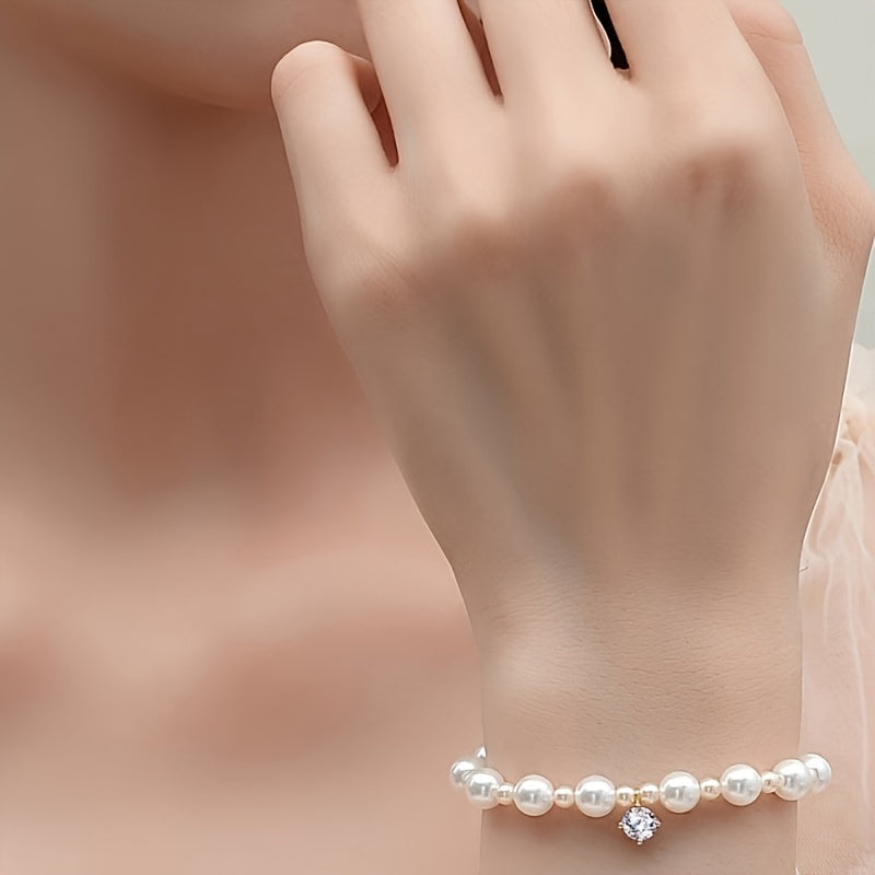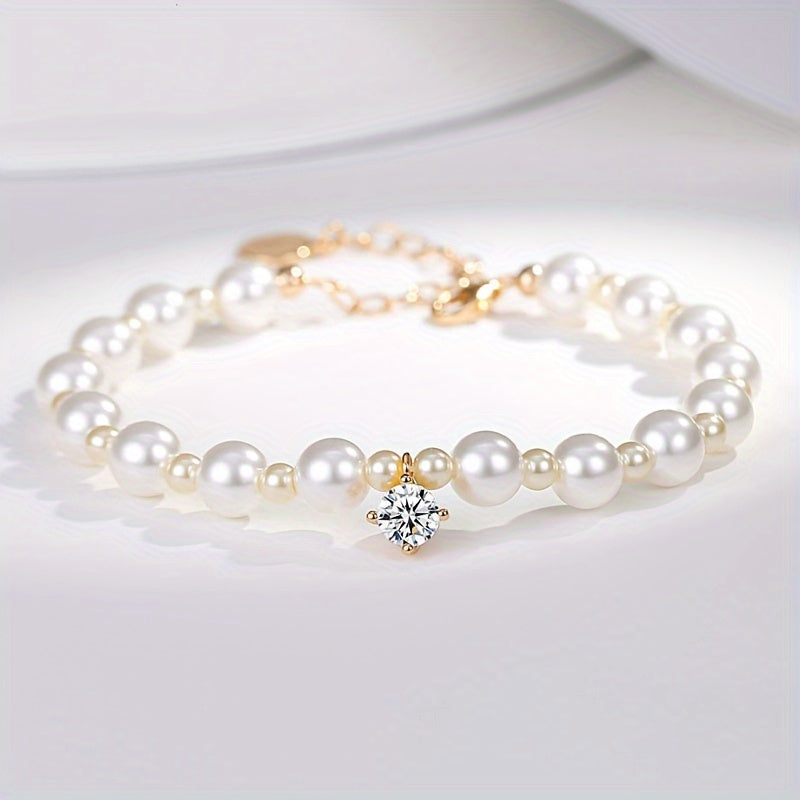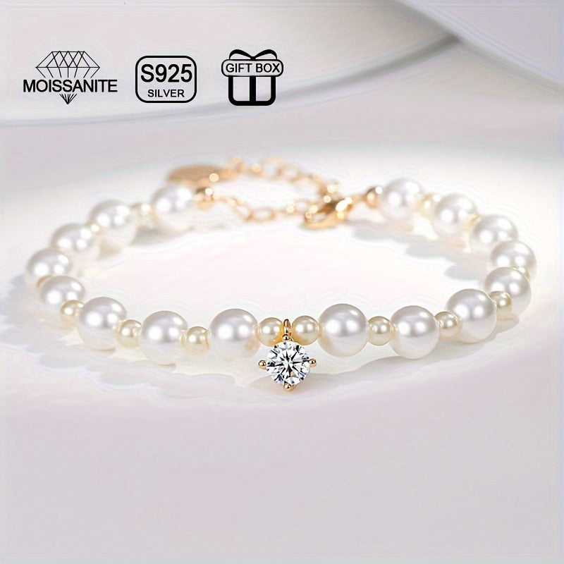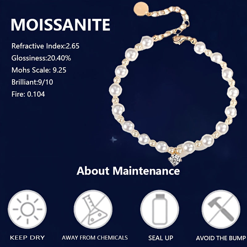 Add a touch of elegance to your look with this stunning 925 sterling silver bracelet featuring a 0.5ct moissanite pearl bead in golden color.