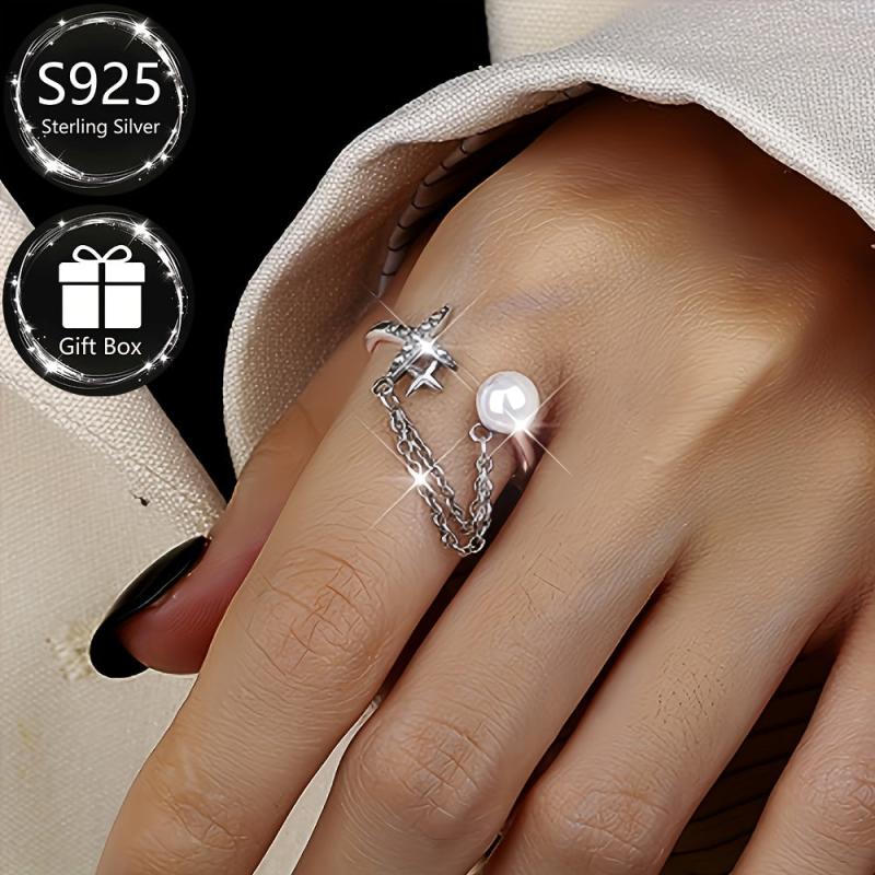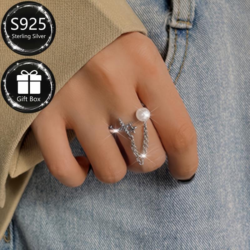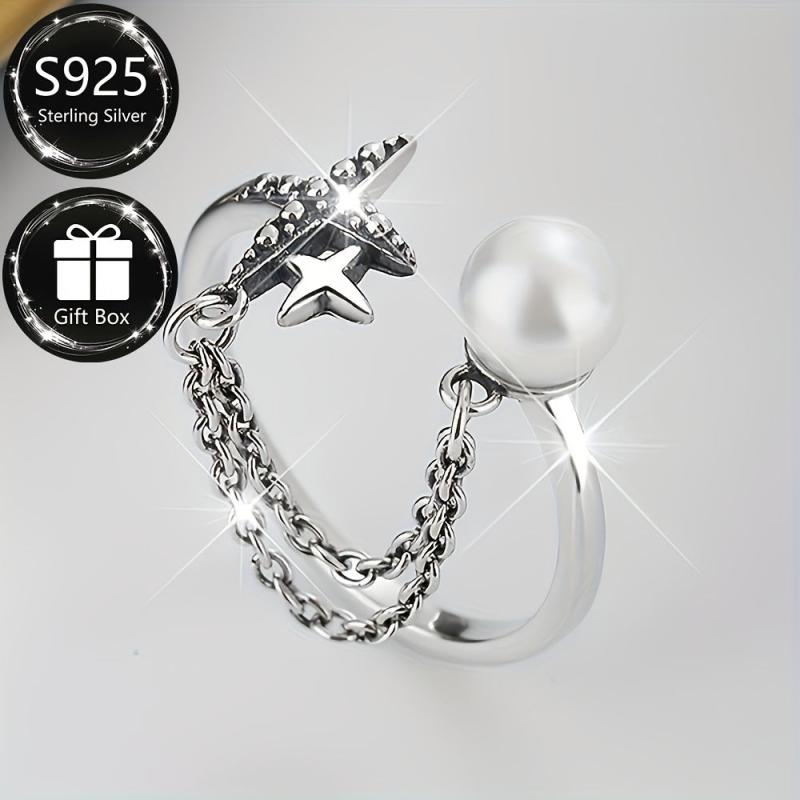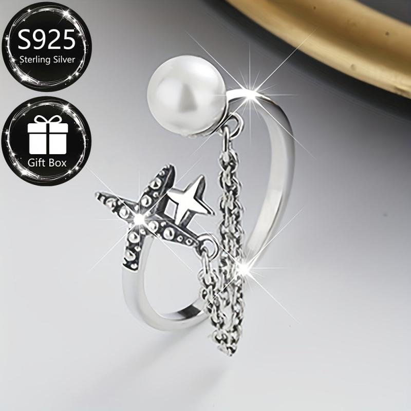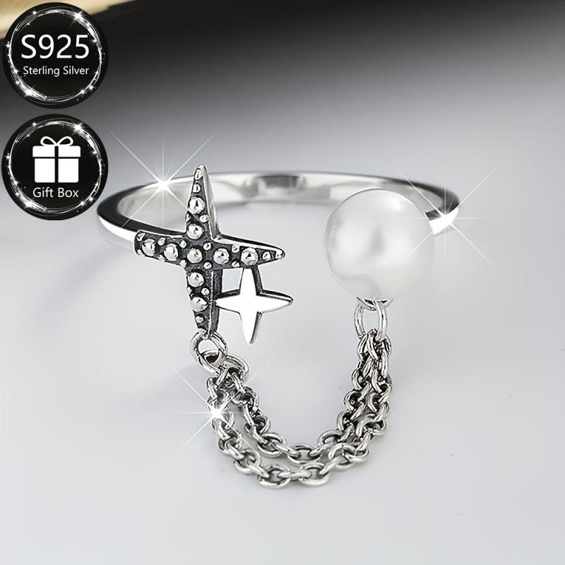 This vintage 925 sterling silver bracelet features an imitation pearl and star pendant. It is perfect for daily wear or as a gift. The bracelet has an adjustable clasp for a comfortable fit.