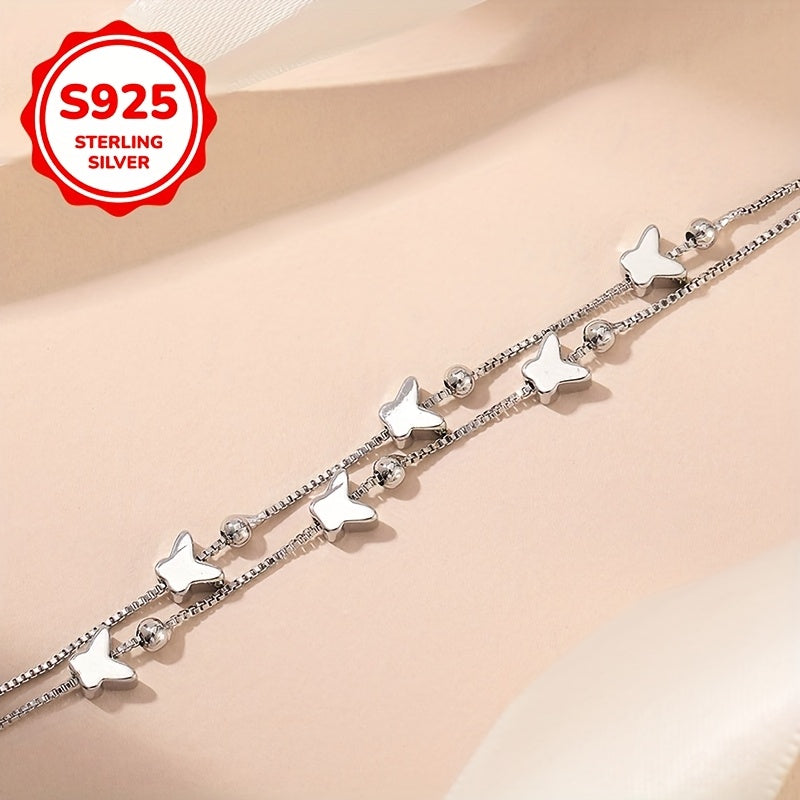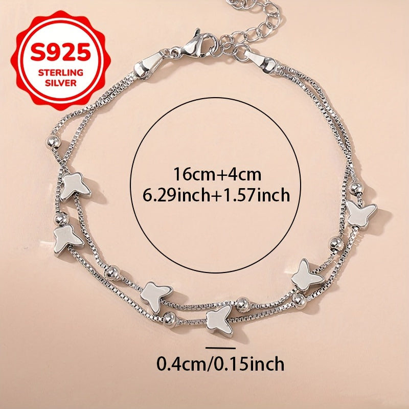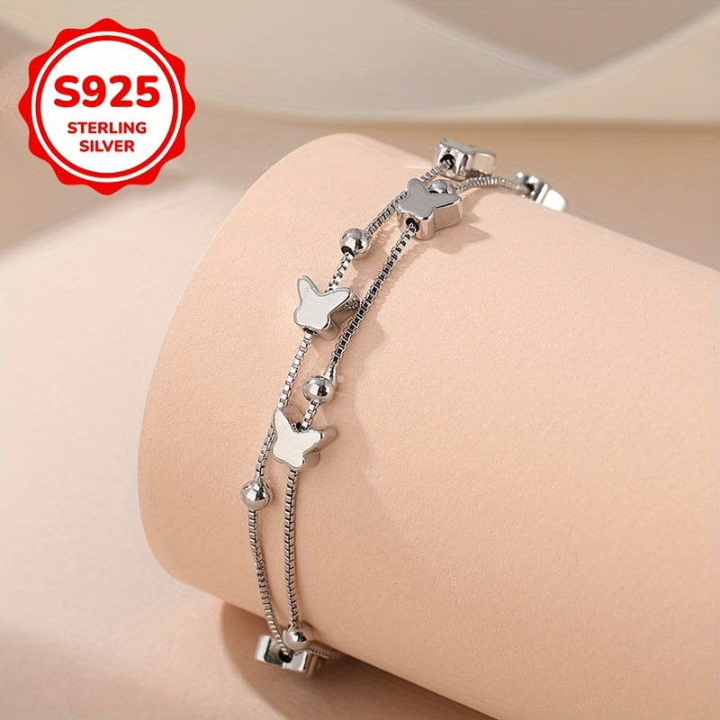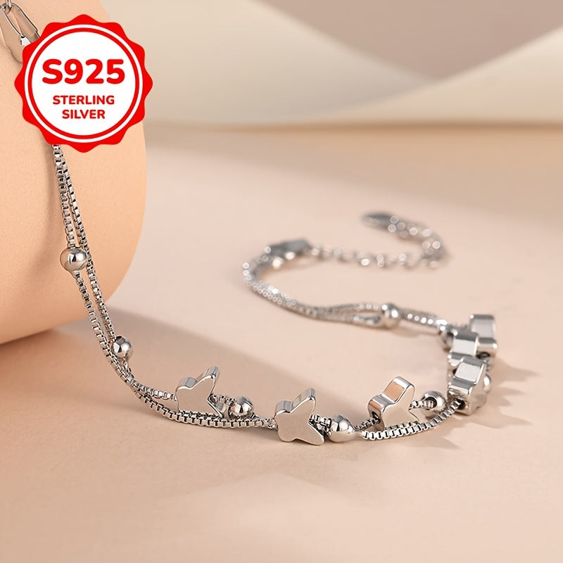 This minimalist bracelet is made of hypoallergenic 925 silver featuring a single layer butterfly and round beads. Perfect gift for couples and friends.