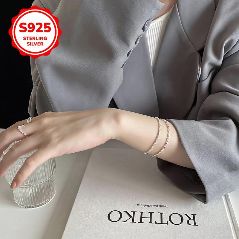 Elegant and high-end double layer bracelet made with sparkling 925 silver, a perfect hand accessory for your girlfriend.