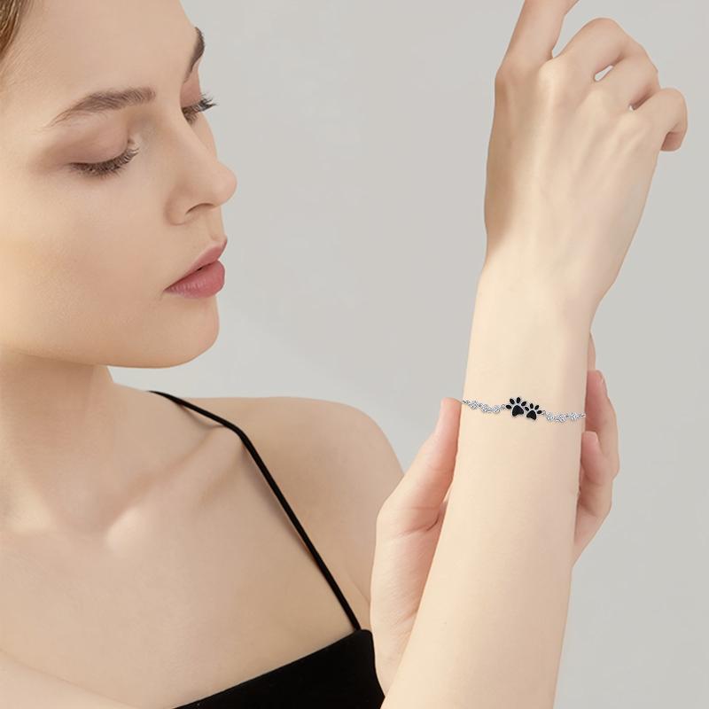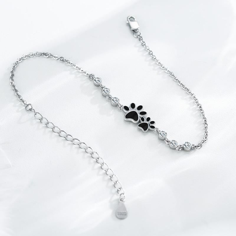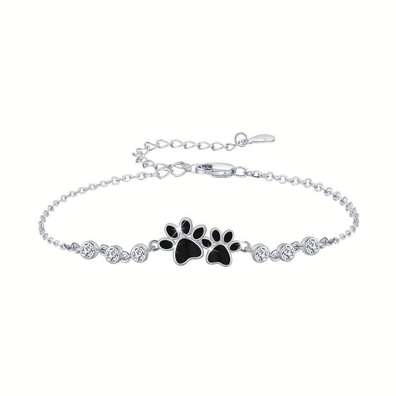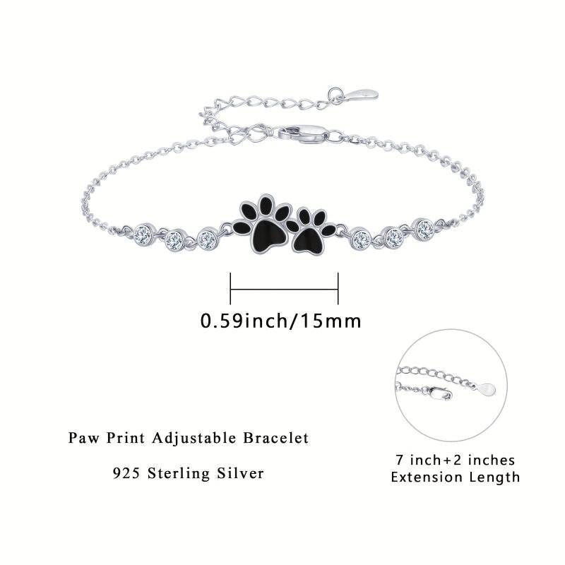 Adorn your wrist with this stunning 925 sterling silver dog paw bracelet featuring sparkling cubic zirconia stones. The adjustable design ensures a perfect fit for all occasions.