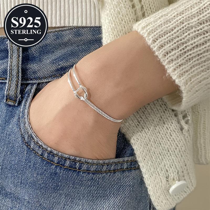 This 925 sterling silver bracelet features a hypoallergenic double layer rope knot design. It comes with an anti-oxidation storage box, making it a perfect gift for women, couples, or friends.