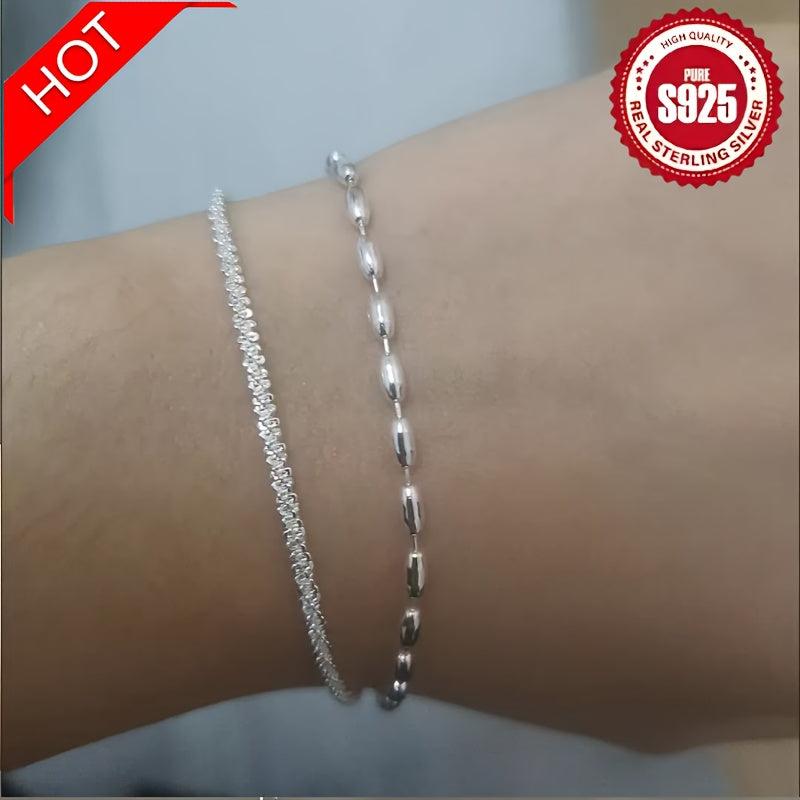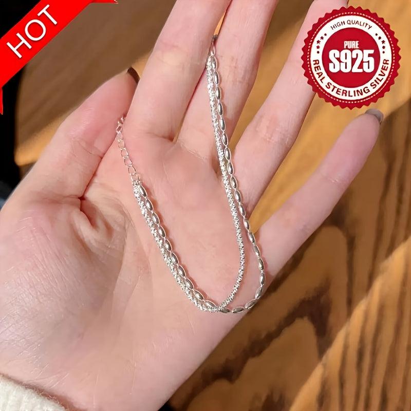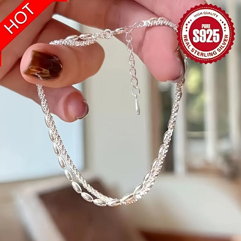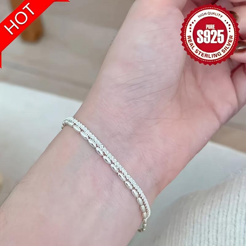This double layer star bracelet is made of 925 sterling silver with a delicate beaded chain. It features an adjustable length and lobster clasp, perfect for casual attire or as a Valentine's Day gift.