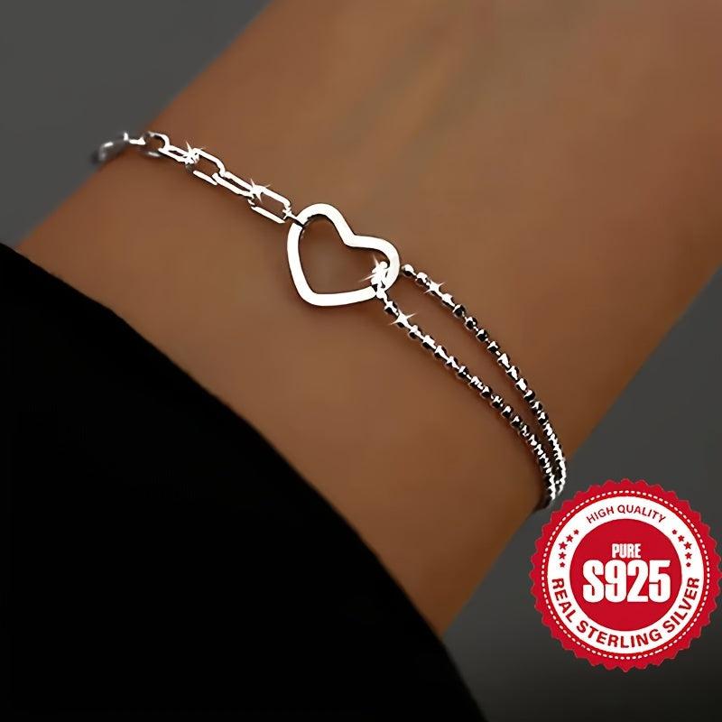 This double layer bracelet features 925 silver flash bead design that is classic and low allergy. Weighs 2.25g.