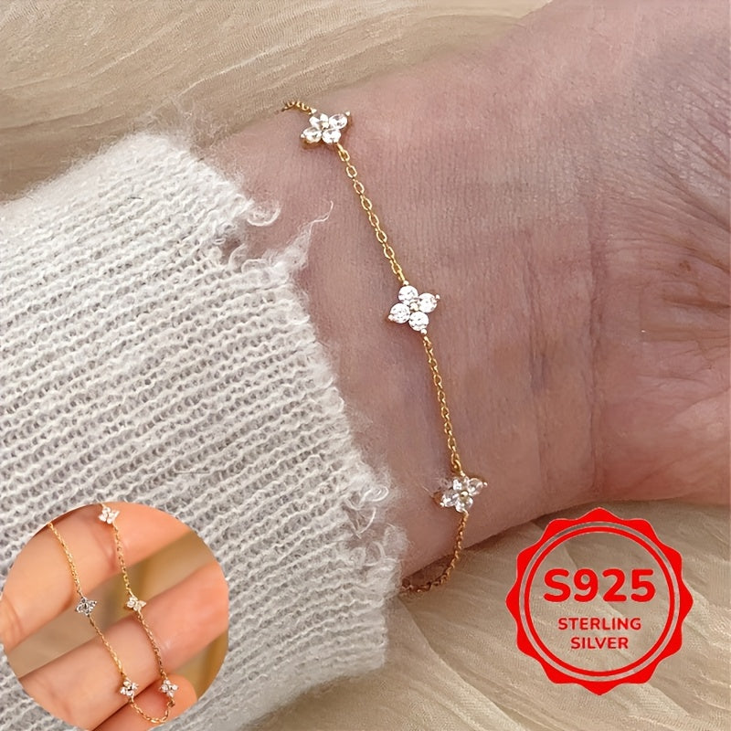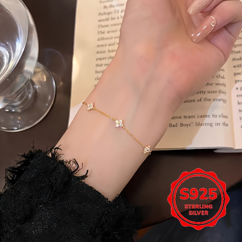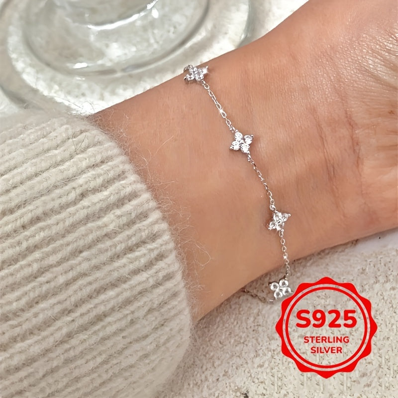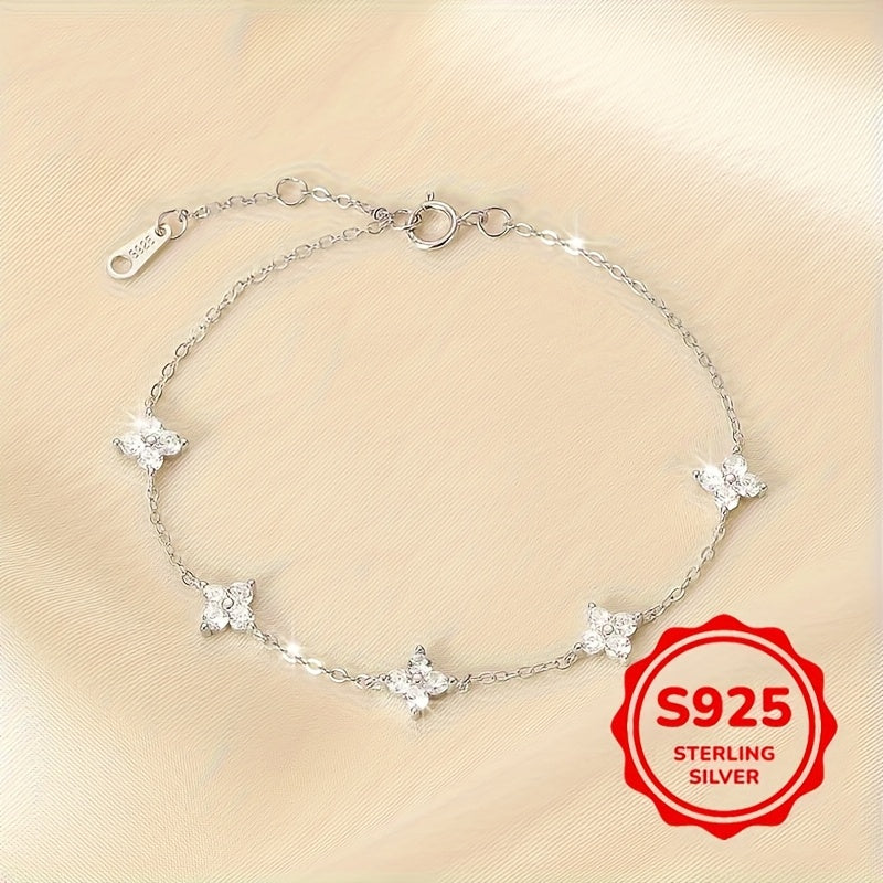 Elegant and lightweight bracelet featuring a full star four leaf clover design with synthetic zirconia. Perfect for daily wear and gift giving.