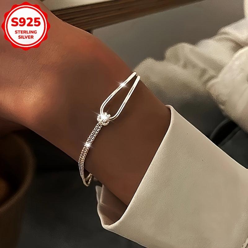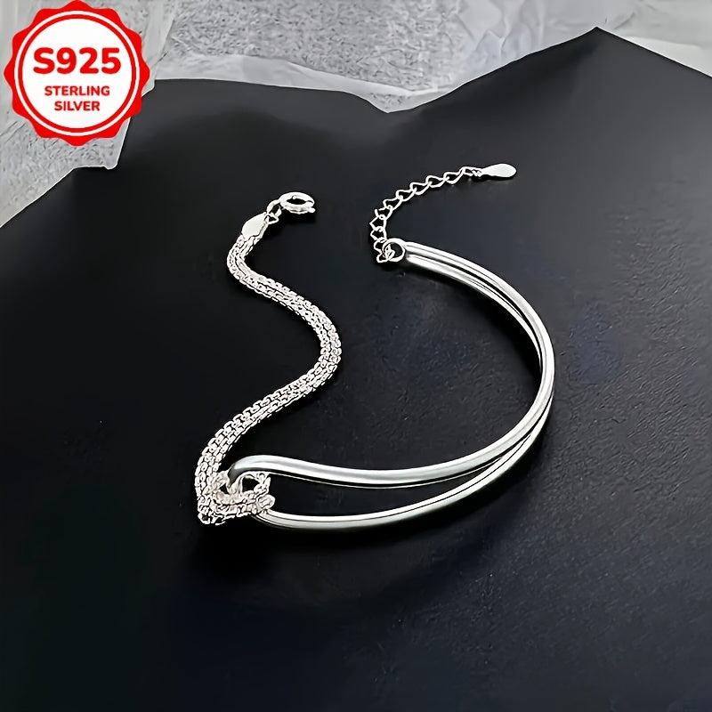 This 925 sterling silver bracelet is a perfect gift for your mother or for Christmas. Its geometric curved design is versatile for all seasons, adding a touch of bohemian style to any outfit.