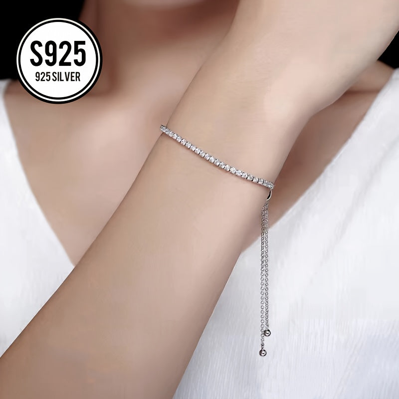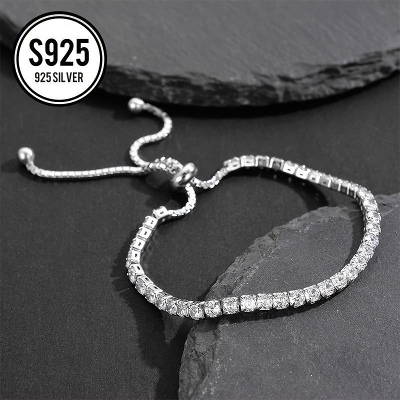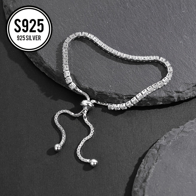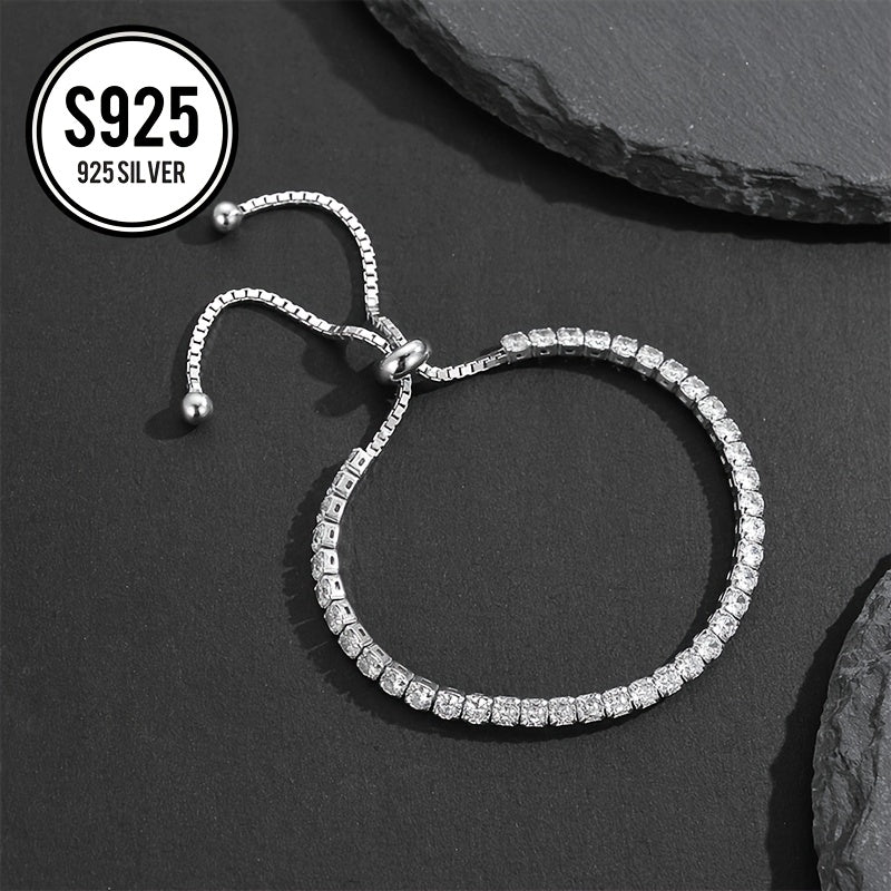 This 925 silver bracelet features a geometric round design, perfect for daily wear or special occasions. It is adjustable to fit different wrist sizes and is hypoallergenic. Makes a great gift!