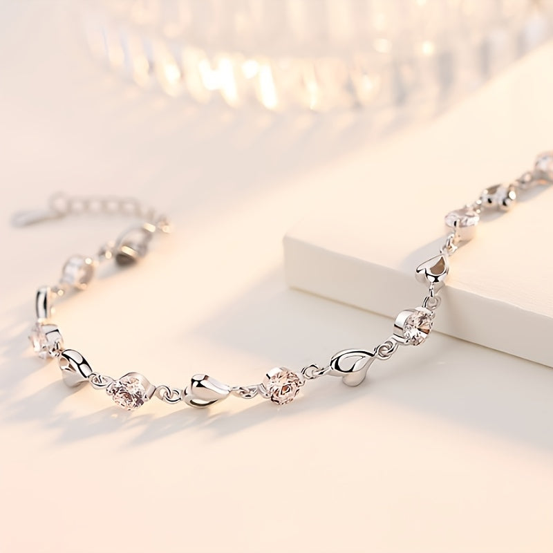 This beautiful heart-shaped bracelet is made of 925 sterling silver with synthetic zirconia. It has a vintage boho style and is lightweight at 7.1g, making it perfect for daily wear and gift giving. The Mardi Gras design adds a festive touch to any outfit.