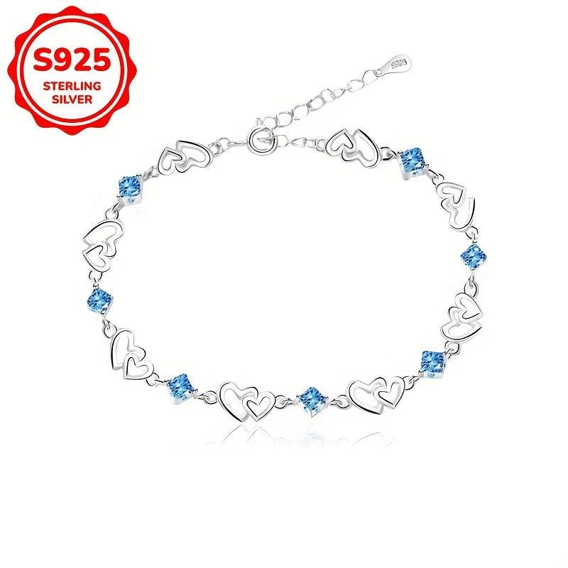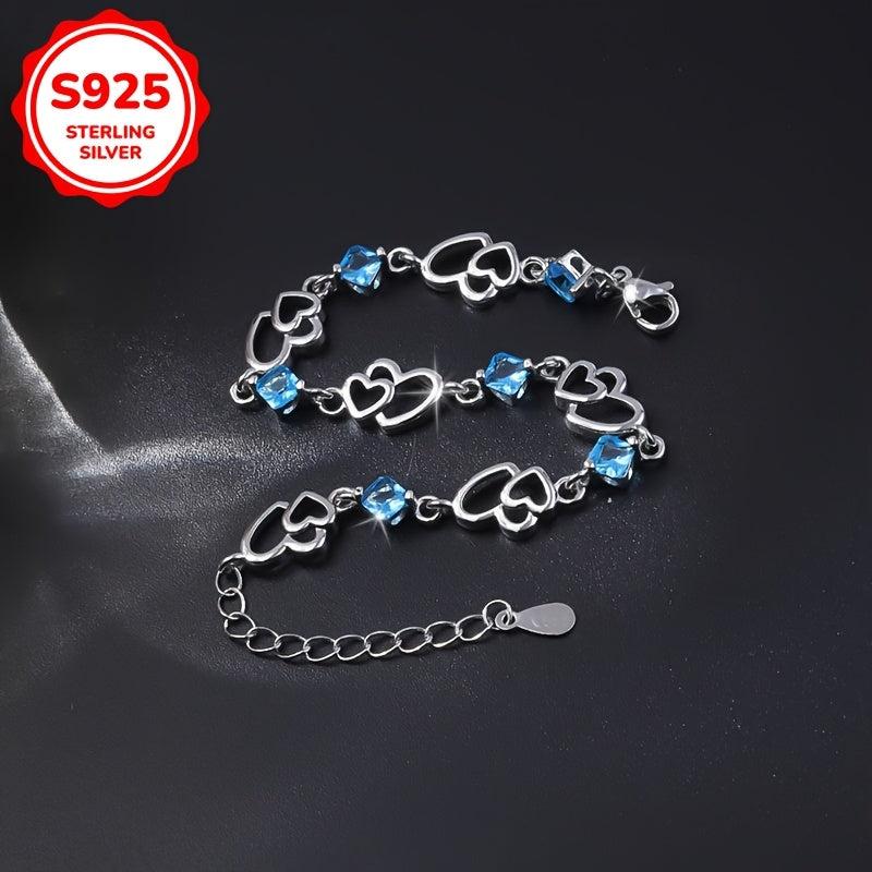 925 Silver Heart Bracelet with Zirconia, 5.01g