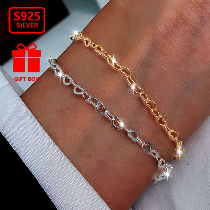 Elegant and timeless, this 925 sterling silver heart chain bracelet is a perfect accessory for women. Ideal for daily wear or gifting on any occasion. Crafted with high-quality materials, this bracelet adds a touch of sophistication.
