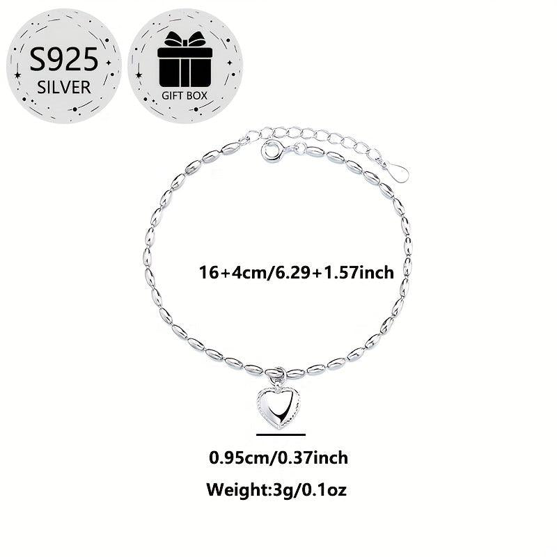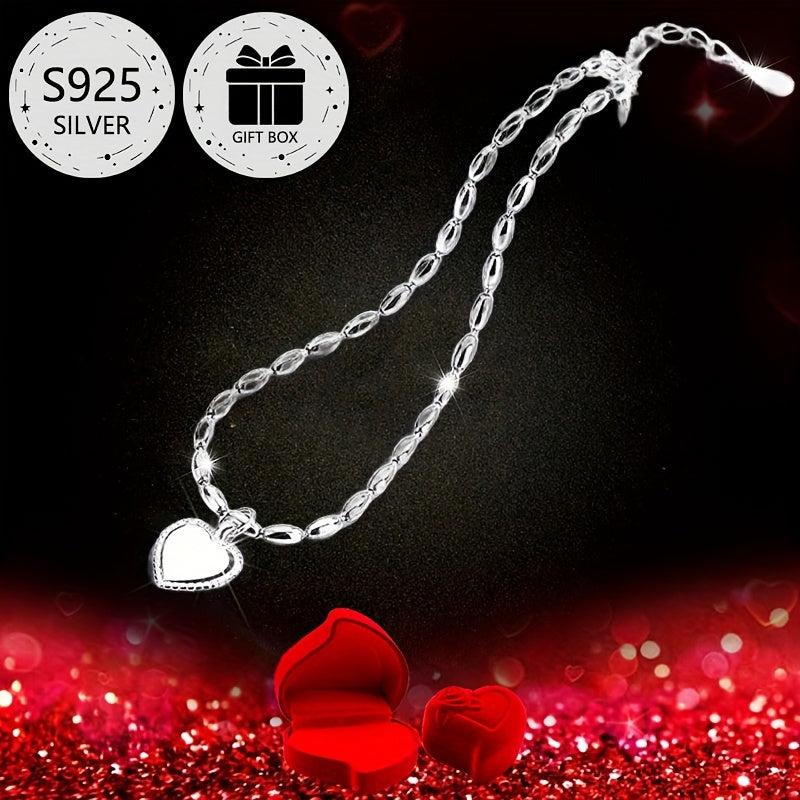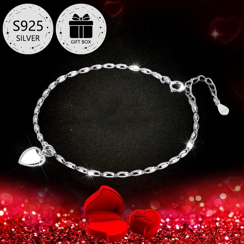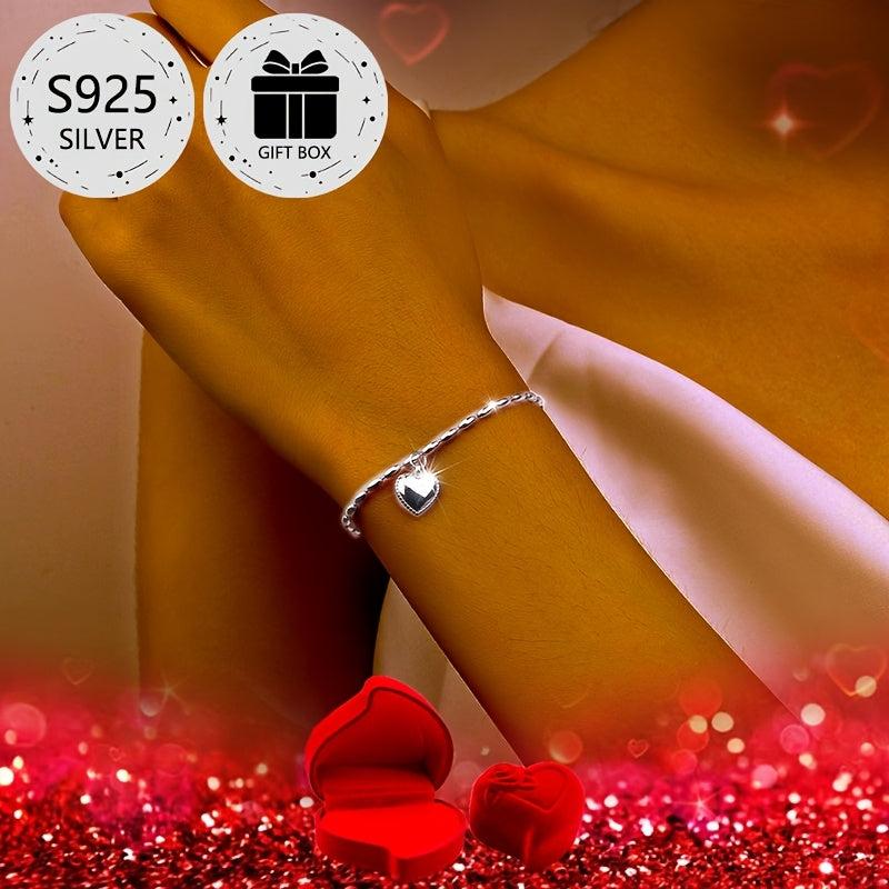 This 925 sterling silver bracelet features a heart charm design that is perfect for various occasions including mother's day, back to school, weddings, and parties.