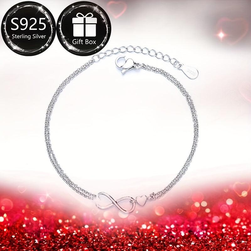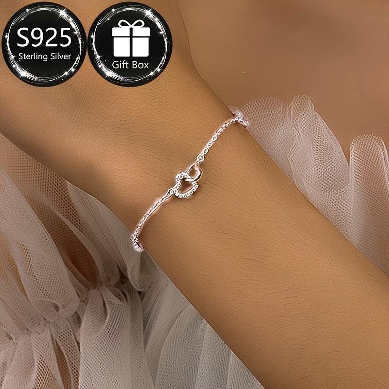 This stunning 925 sterling silver heart pendant bracelet features cubic zirconia, making it an ideal accessory for daily wear, weddings, Valentine's Day, and more. It includes everyday access.
