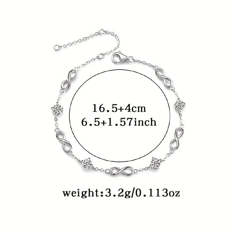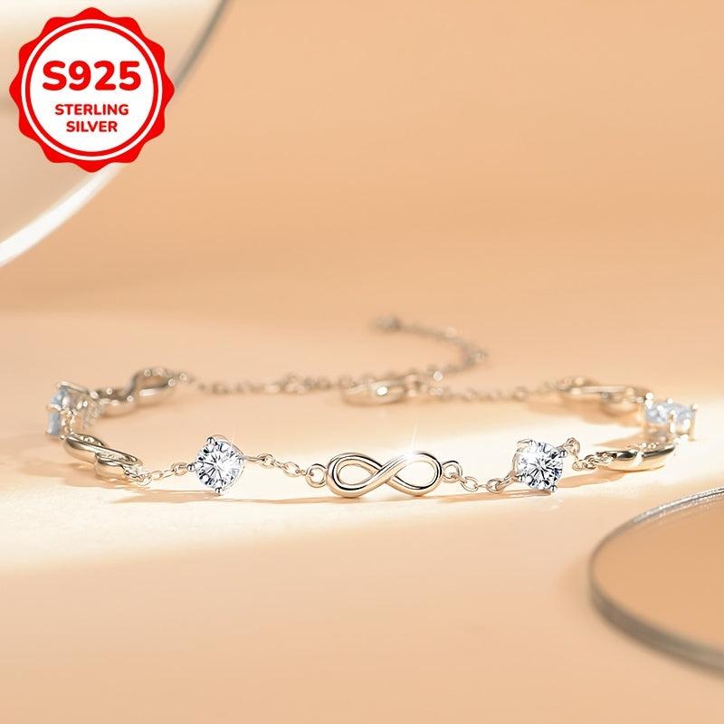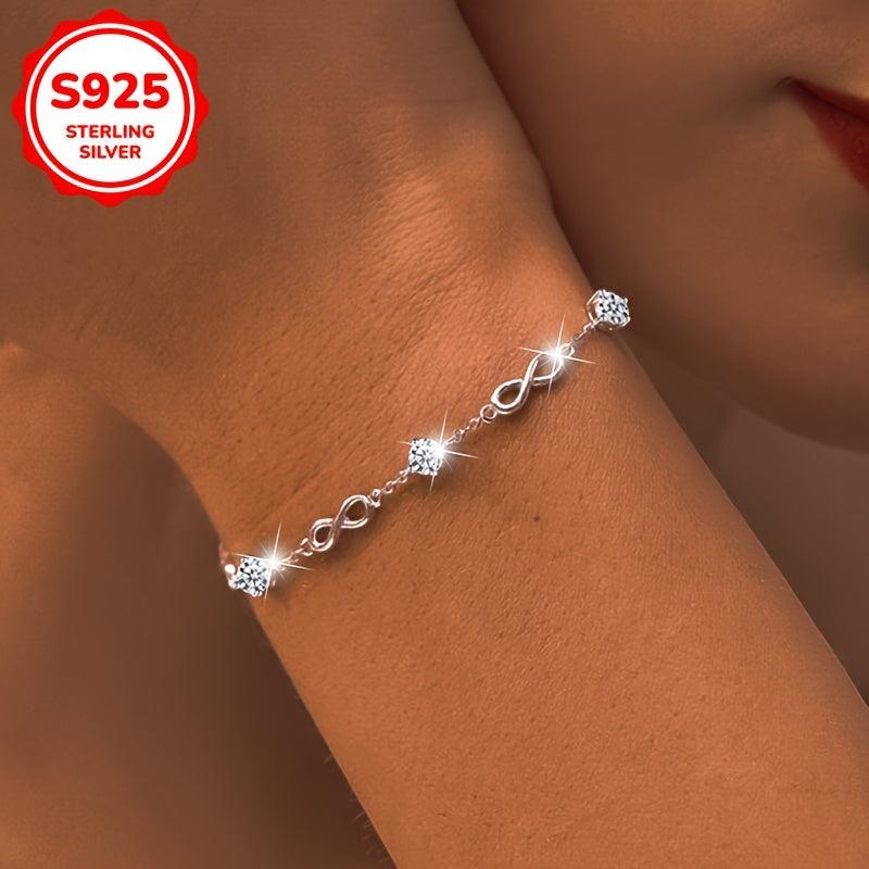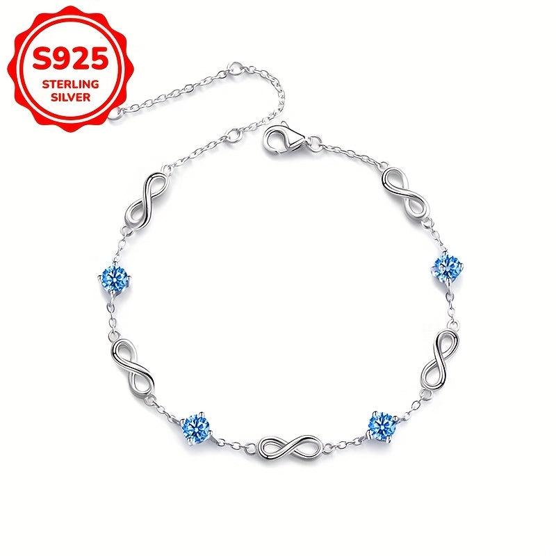This stunning 925 sterling silver infinity bracelet features synthetic zirconia in February birthstone style. Ideal for daily wear and gift occasions.
