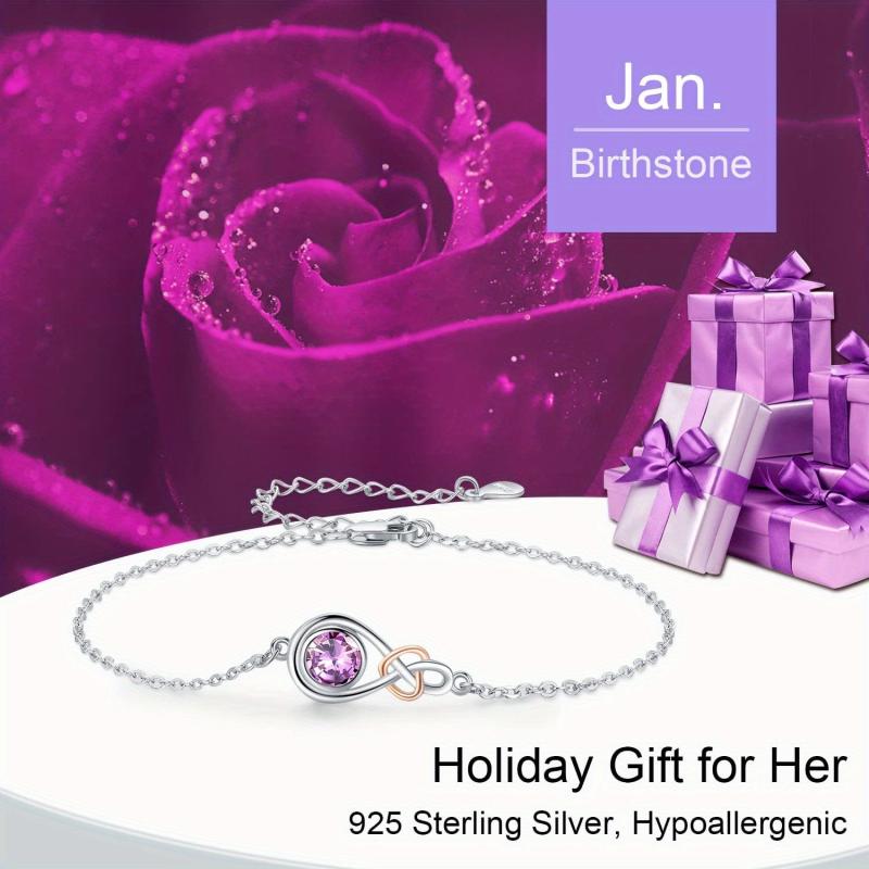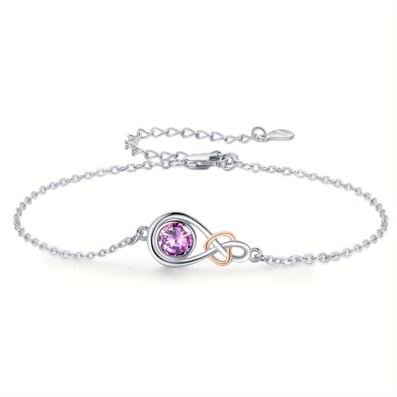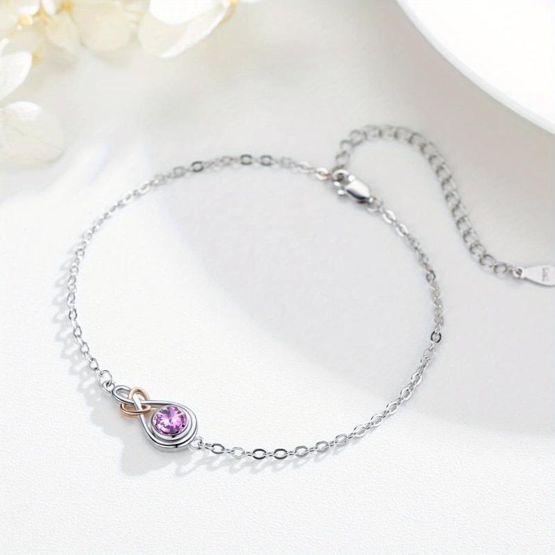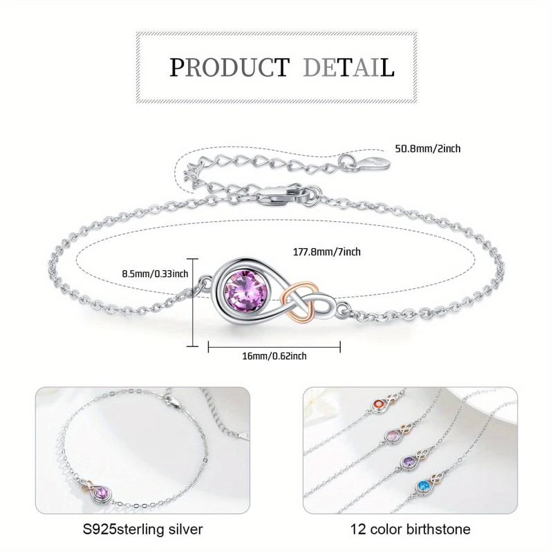 Elegant 925 sterling silver adjustable bracelet with June birthstone charms. Perfect birthday gift for her.