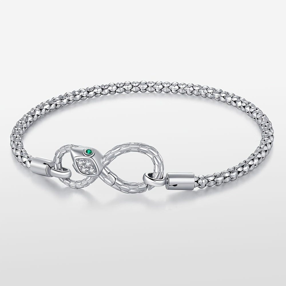 This stunning bracelet is perfect for adding glamour to your look. Ideal for holiday parties and anniversaries, this high-quality jewelry piece features a unique infinity snake symbol design.