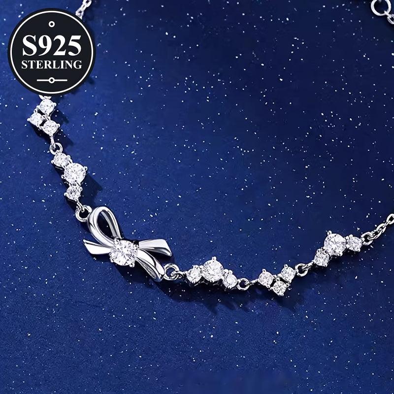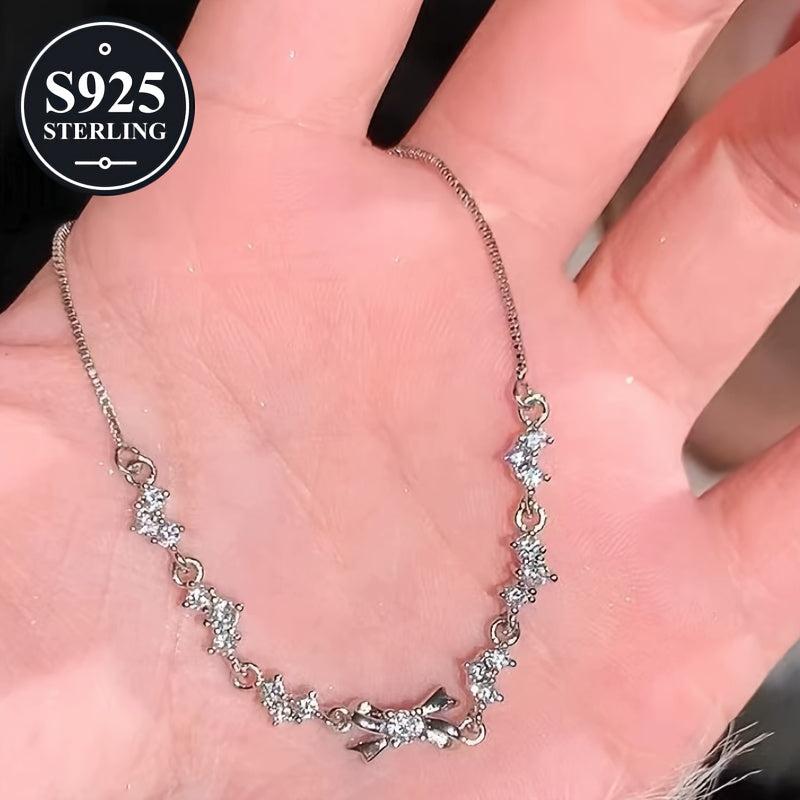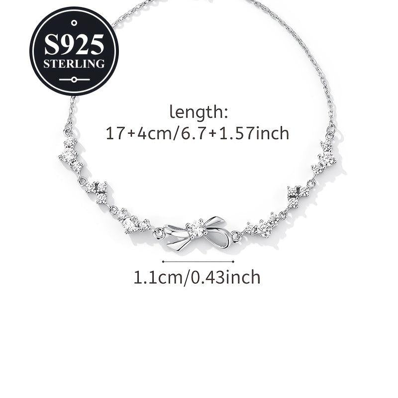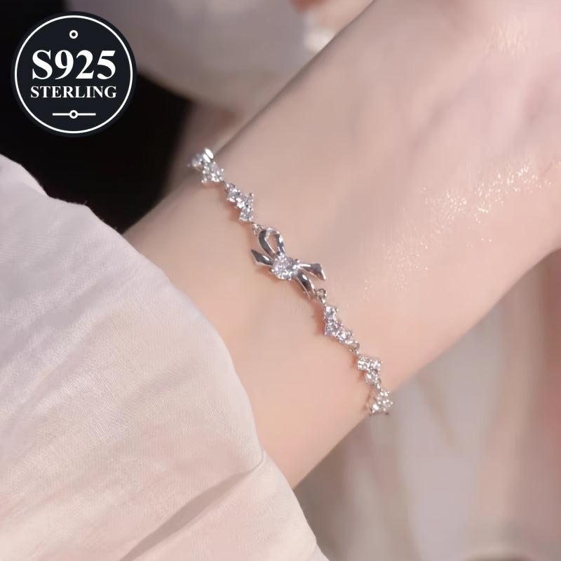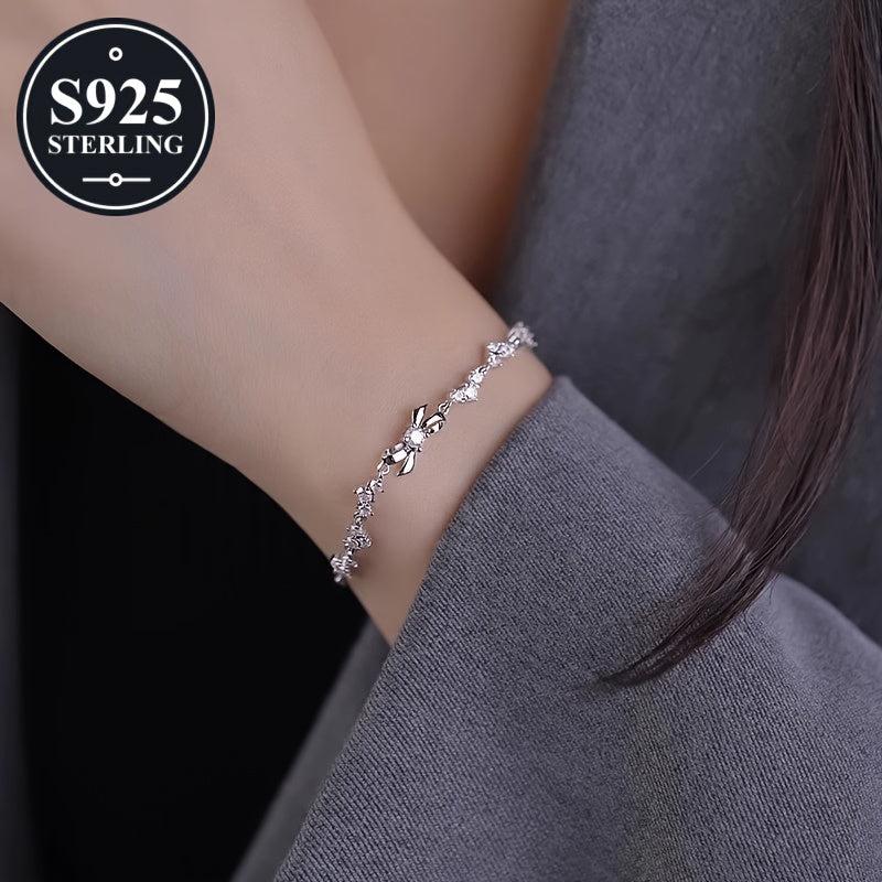 925 Silver Love Heart & Bow Bracelet for Women - Hypoallergenic