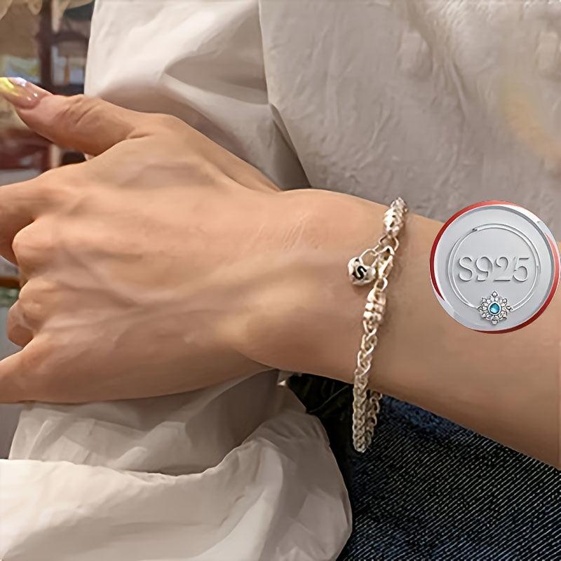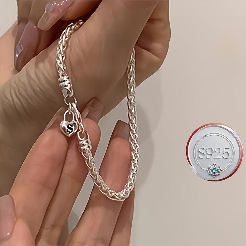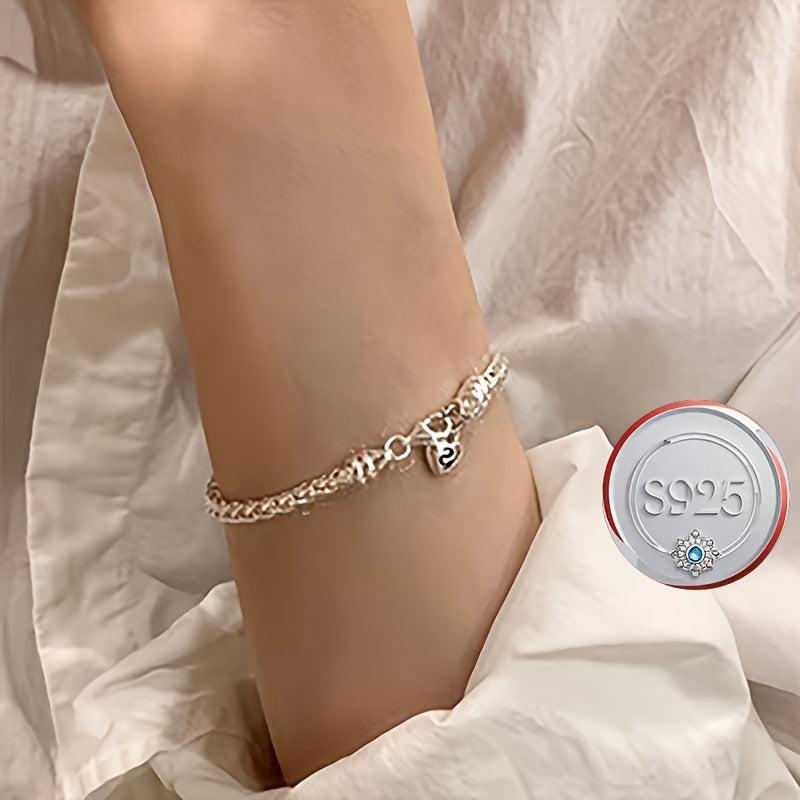 A minimalist 925 sterling silver love lock pendant bracelet with sparkling synthetic accents. Perfect for everyday wear and a thoughtful Valentine's gift.