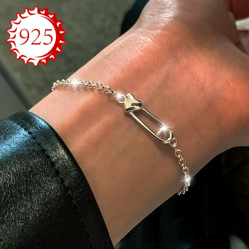 This 925 silver bracelet is a stylish and versatile hand accessory. It is designed for women with low allergy sensitivity. The love paperclip design adds a touch of elegance to your look.