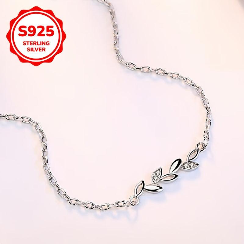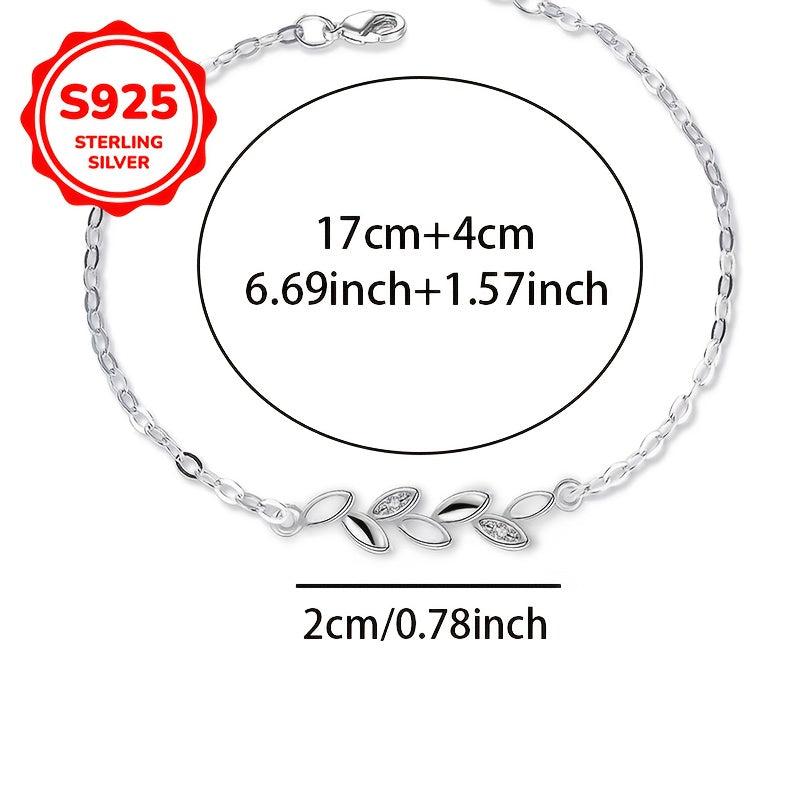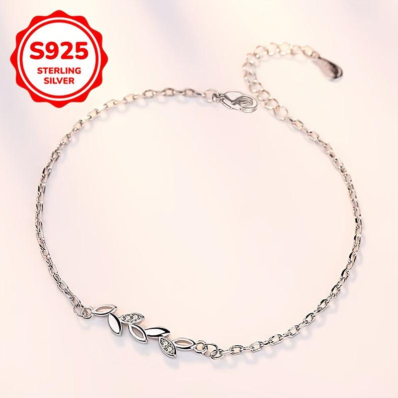 This 925 silver bracelet is a lucky companion for women, featuring a small leaf design. It is hypoallergenic and perfect for everyday wear.