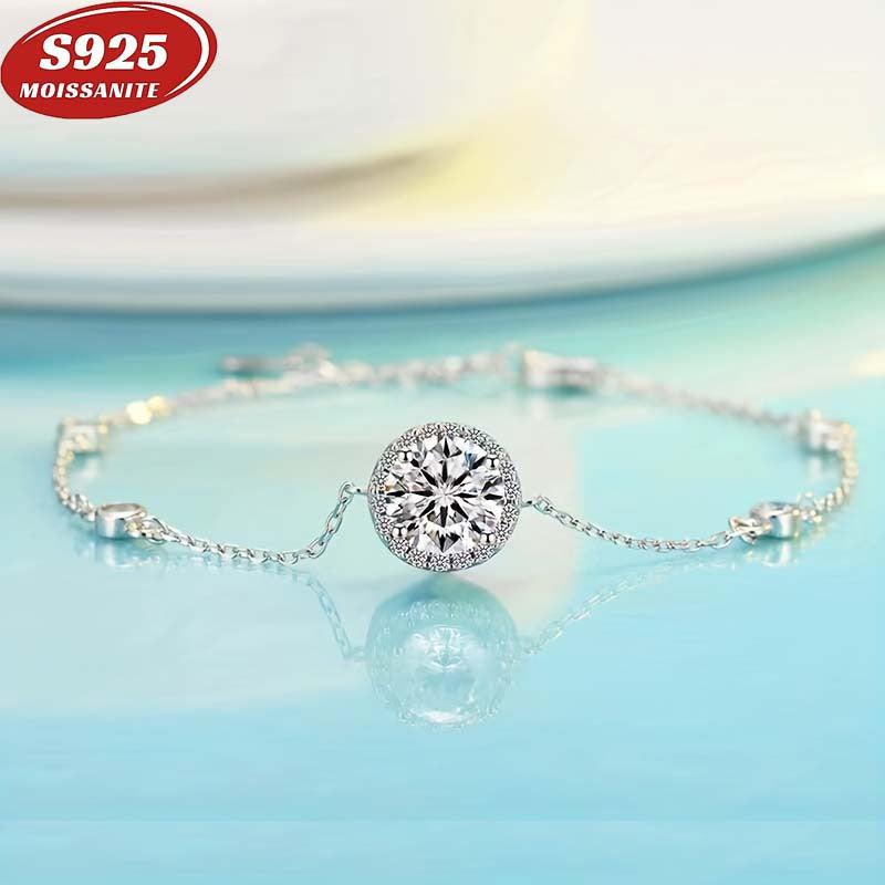 Elegant 925 sterling silver bracelet with dazzling moissanite stones. A stylish accessory perfect for birthday, anniversary, or Mother's Day.