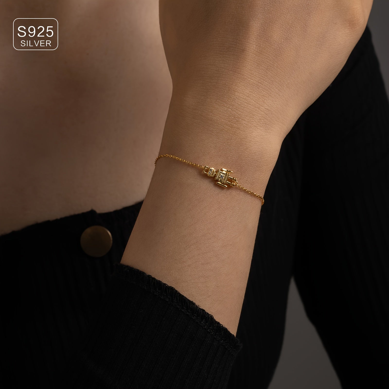 This retro minimalist bracelet is a versatile piece suitable for any occasion. Crafted from 925 silver and adorned with synthetic zirconia, it makes the perfect gift for your girlfriend.