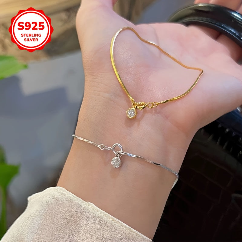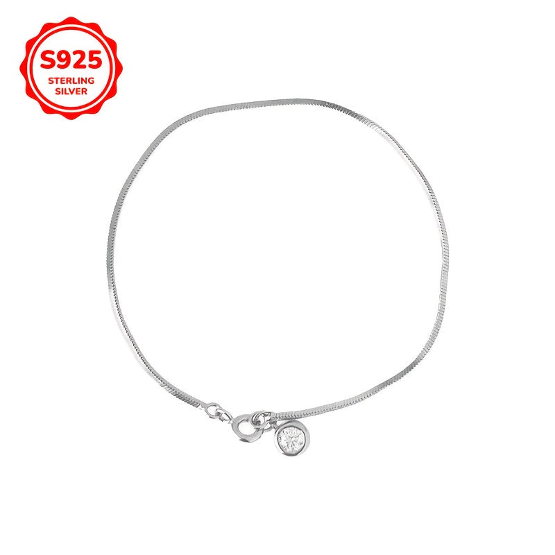 Elegant and versatile bracelet featuring a round pendant and snake bone chain. Crafted from 925 sterling silver with bubble-shaped synthetic zirconia accents. Perfect for everyday wear.