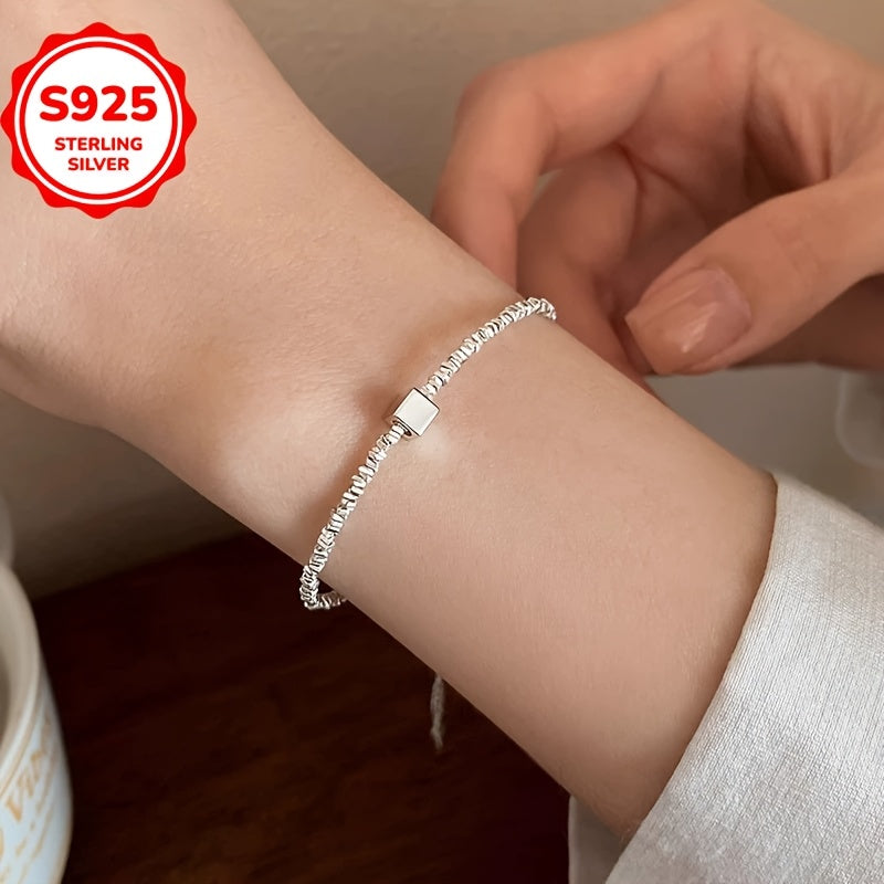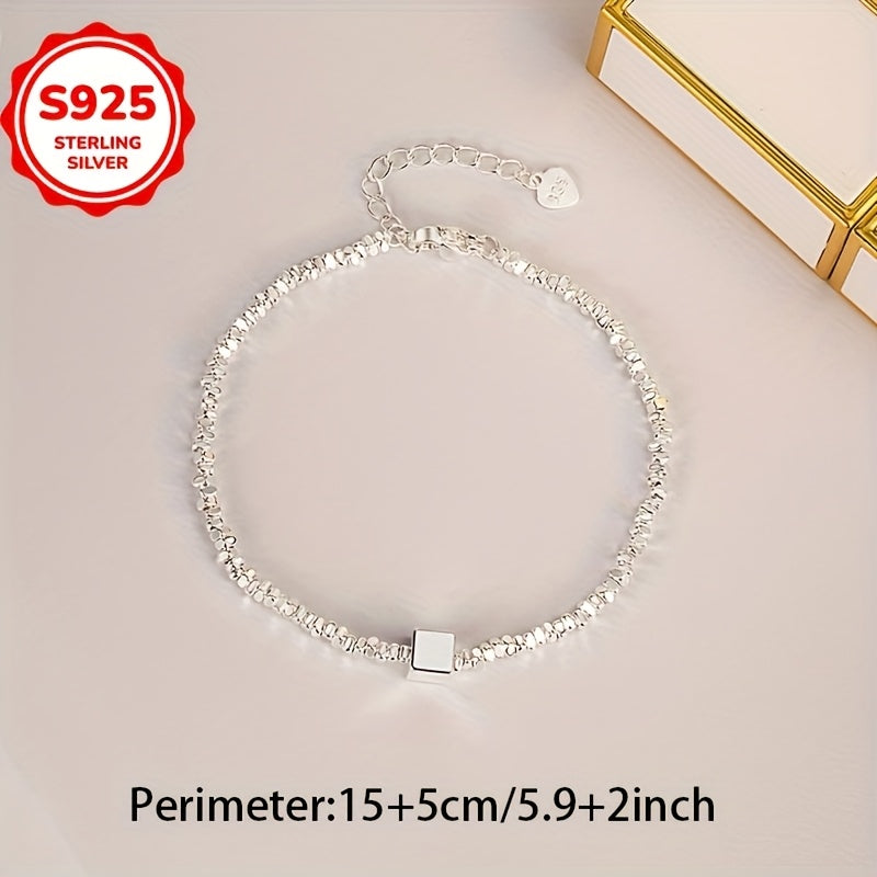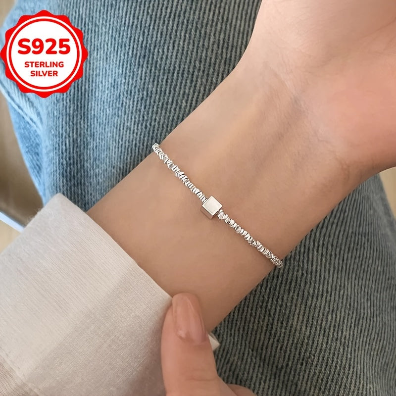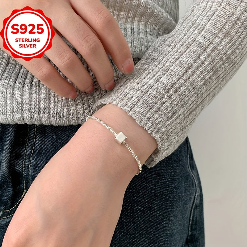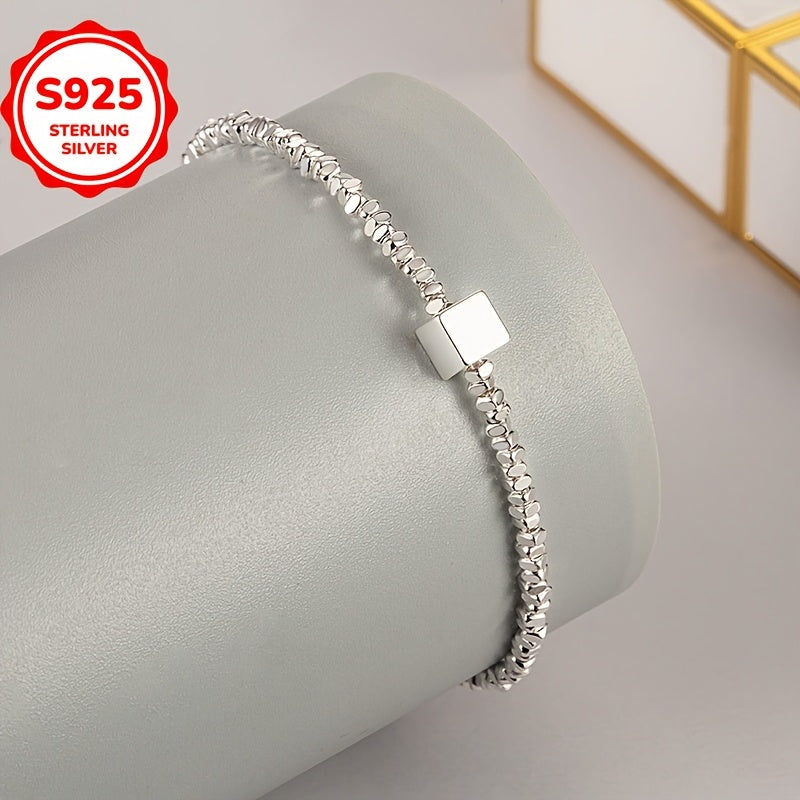 This stylish bracelet features a hypoallergenic small square pendant with an irregular cut design. Made of 925 sterling silver, it is perfect for everyday wear and can be worn in all four seasons. Ideal as a gift for loved ones.