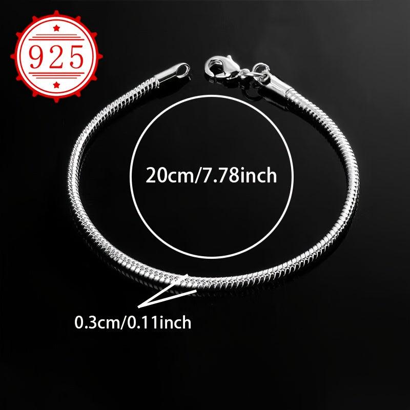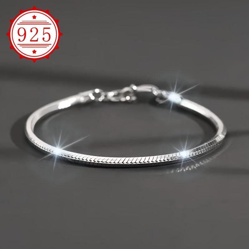 This 925 silver bracelet features an octagonal snake bone chain design that is hypoallergenic and perfect for daily wear. Ideal for couples and friends.