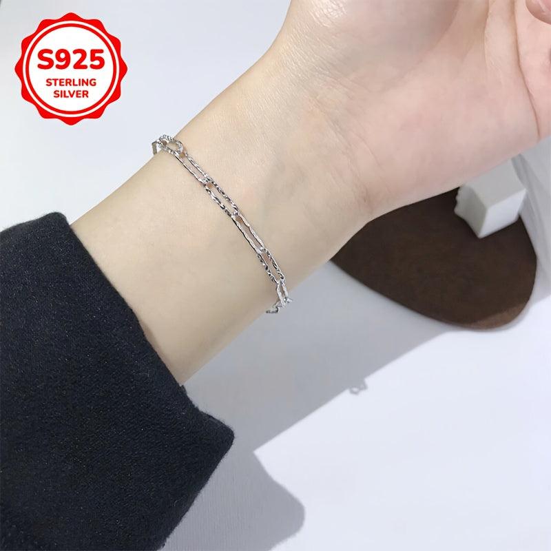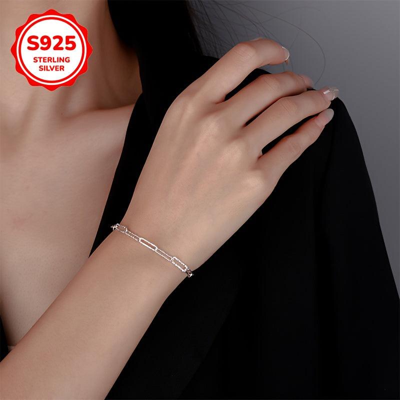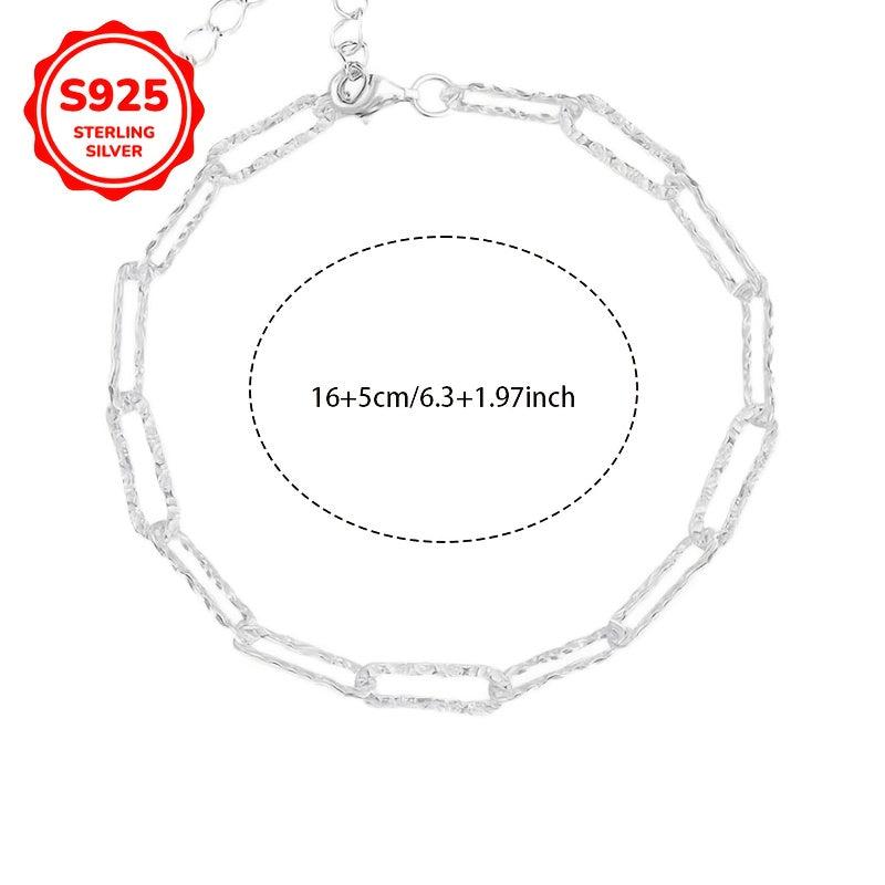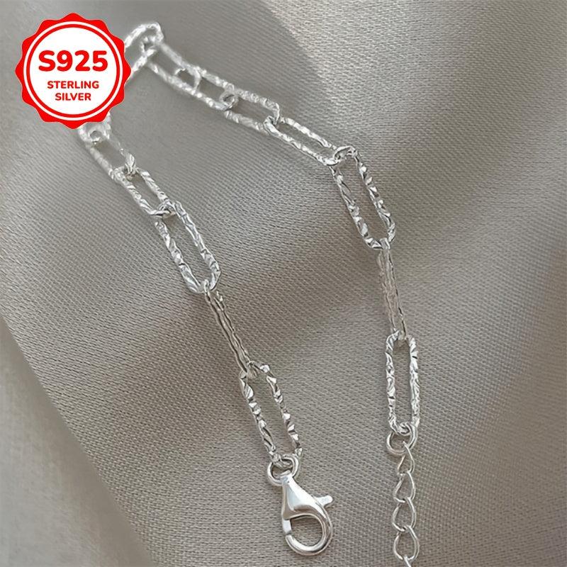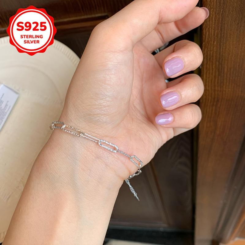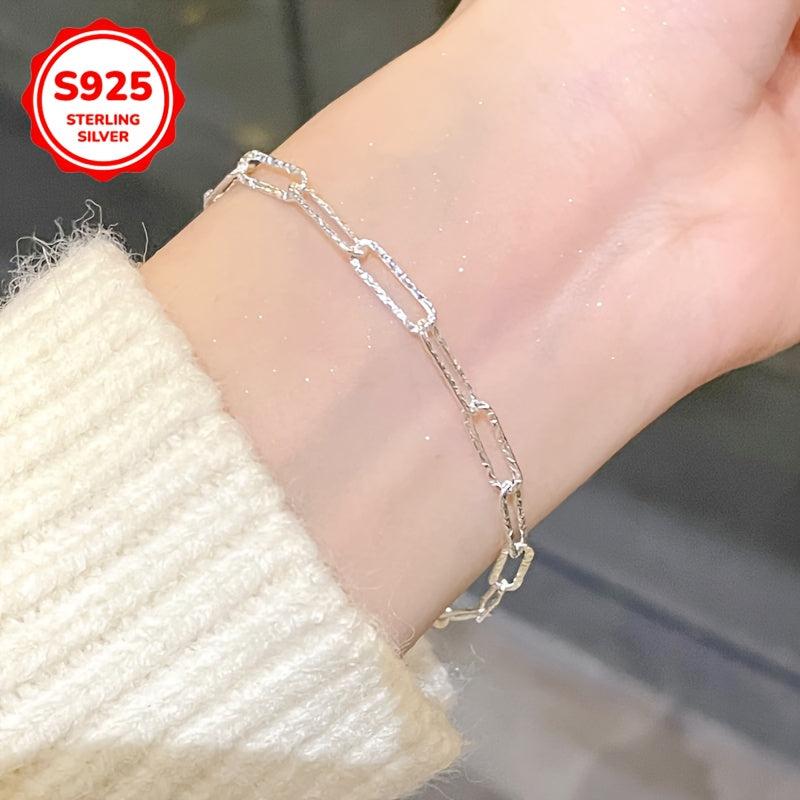 This bracelet is made of 925 sterling silver, perfect for those with sensitive skin. It features a minimalist square chain design that is elegant and versatile. A great gift for women of all ages.