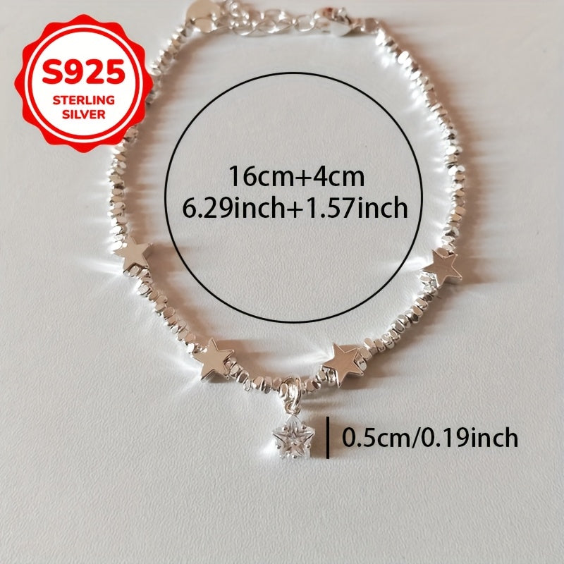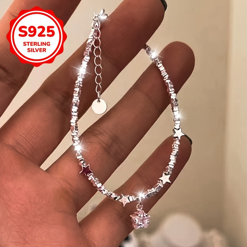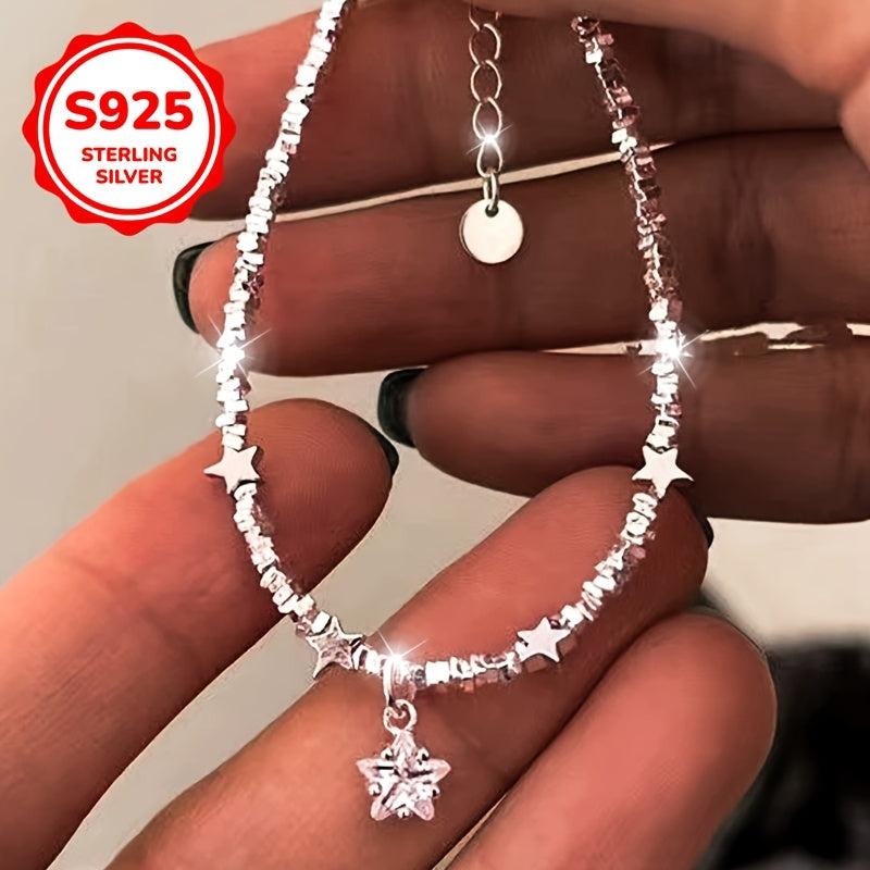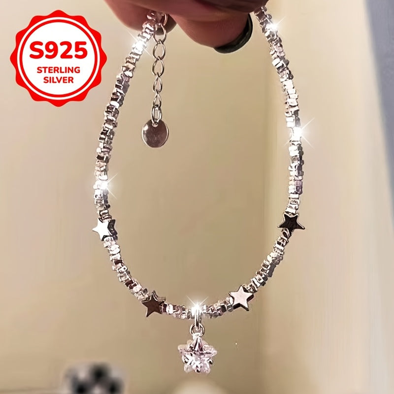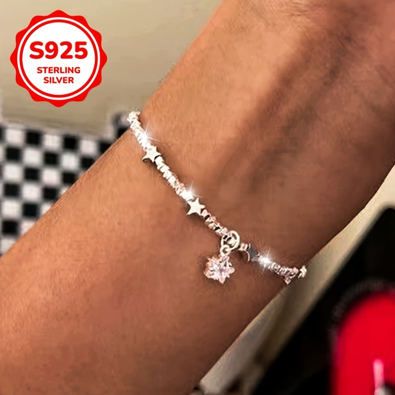 This stunning bracelet is crafted from 925 sterling silver and features a star charm with sparkling cubic zirconia. The design is perfect for all seasons and occasions, making it an ideal gift for couples and friends.