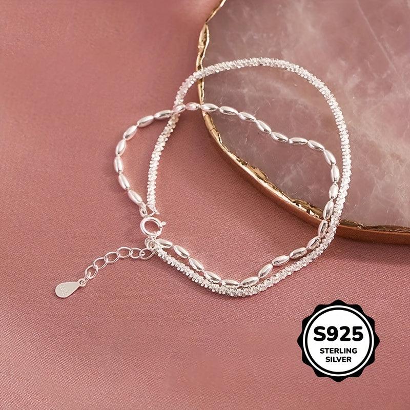 A stunning 925 sterling silver bracelet with a starry rice grain design and double layer that radiates a beautiful sparkle. This bracelet is the perfect gift for women, ideal for Christmas or any special occasion.