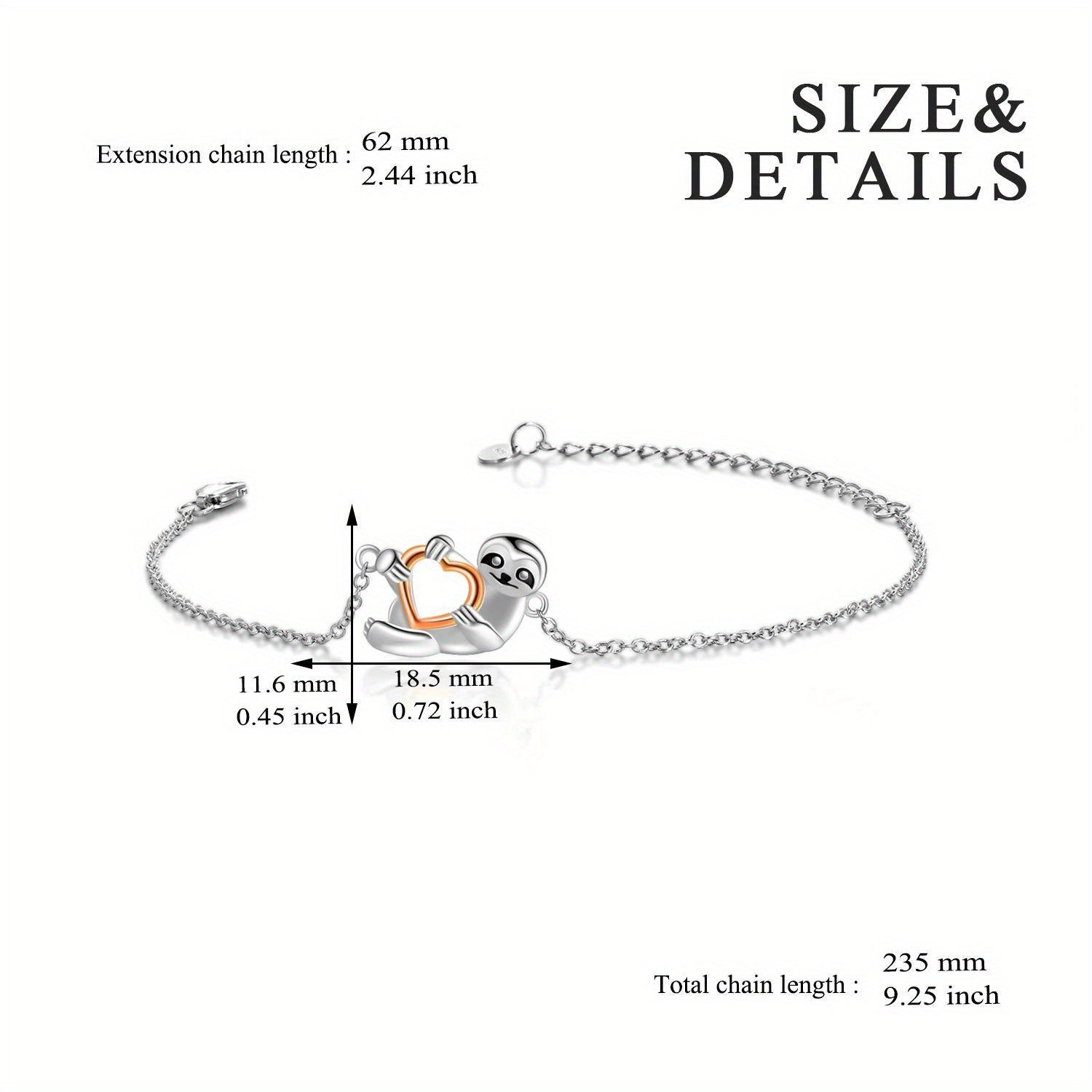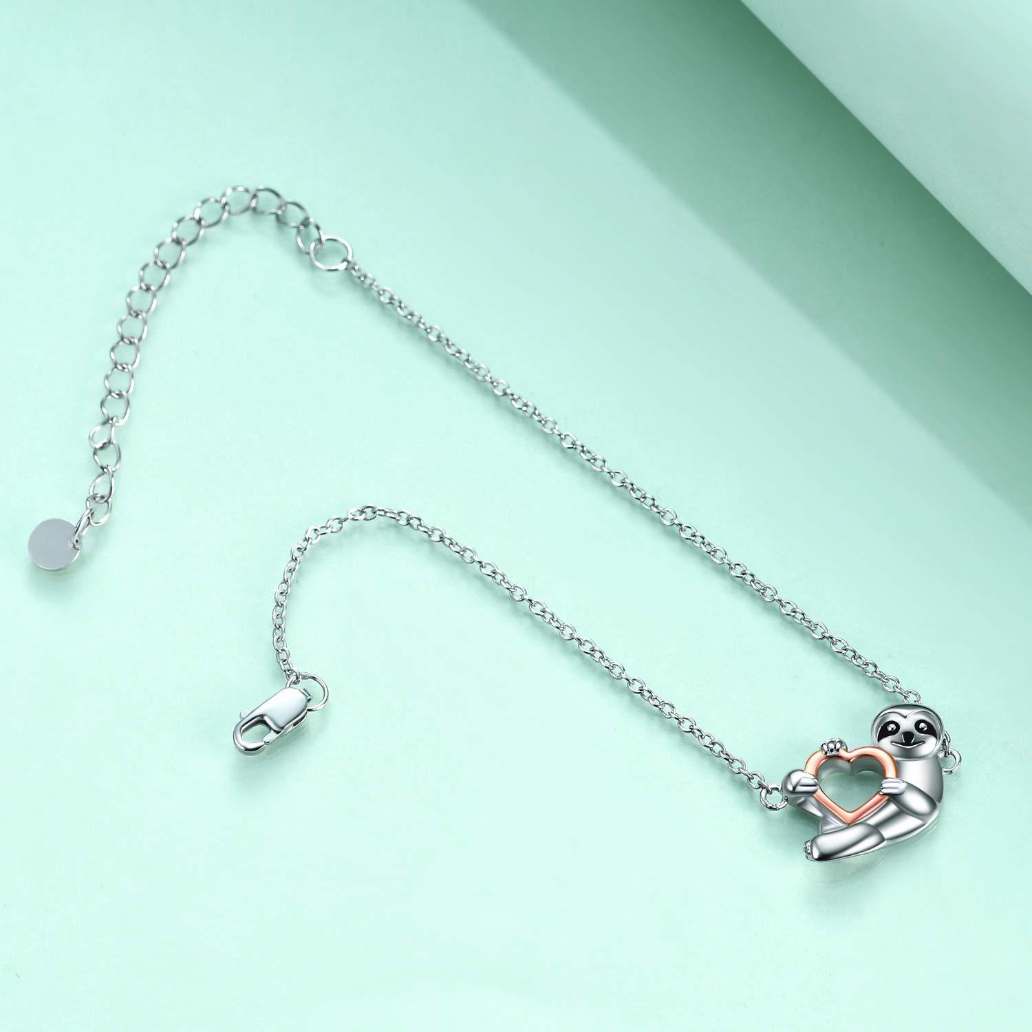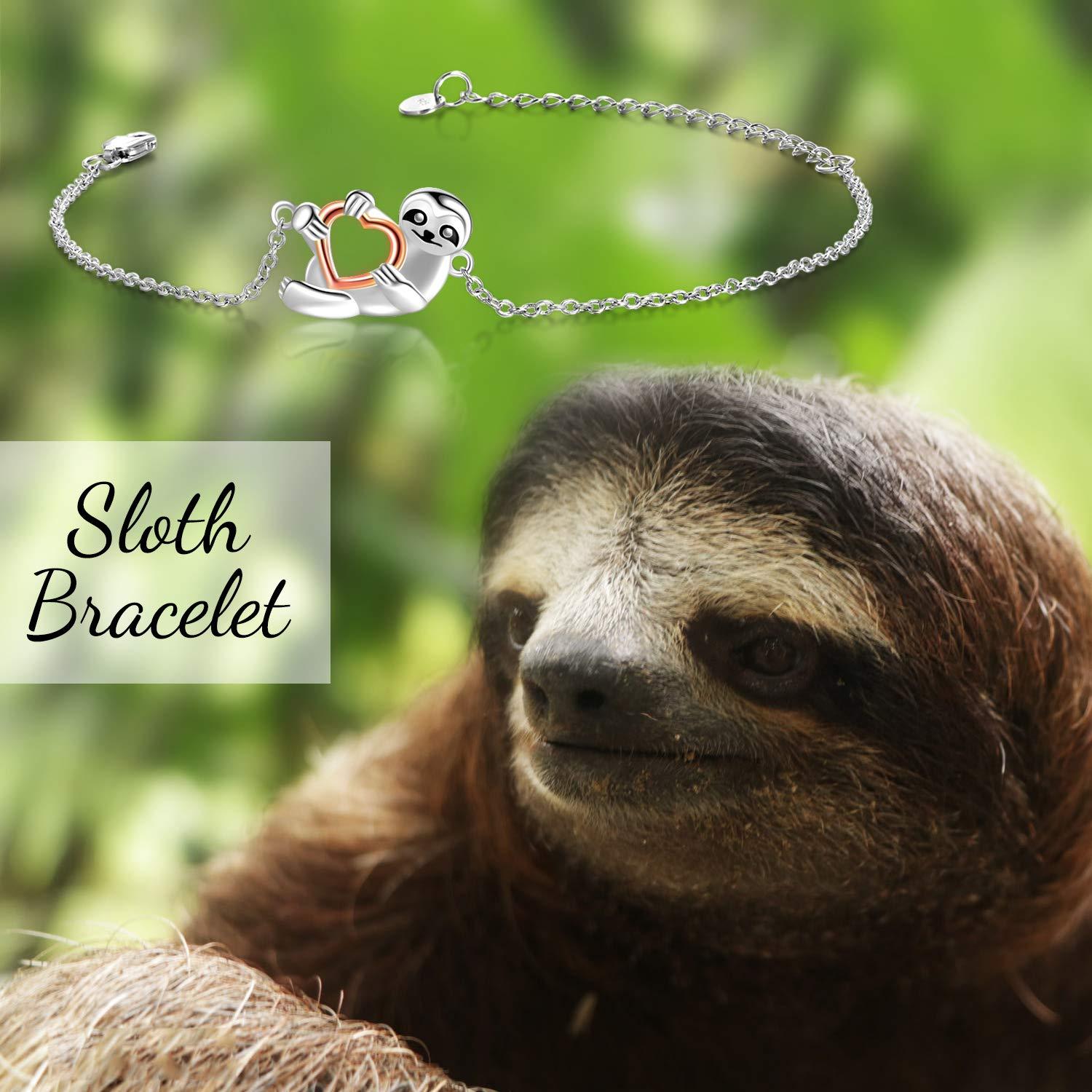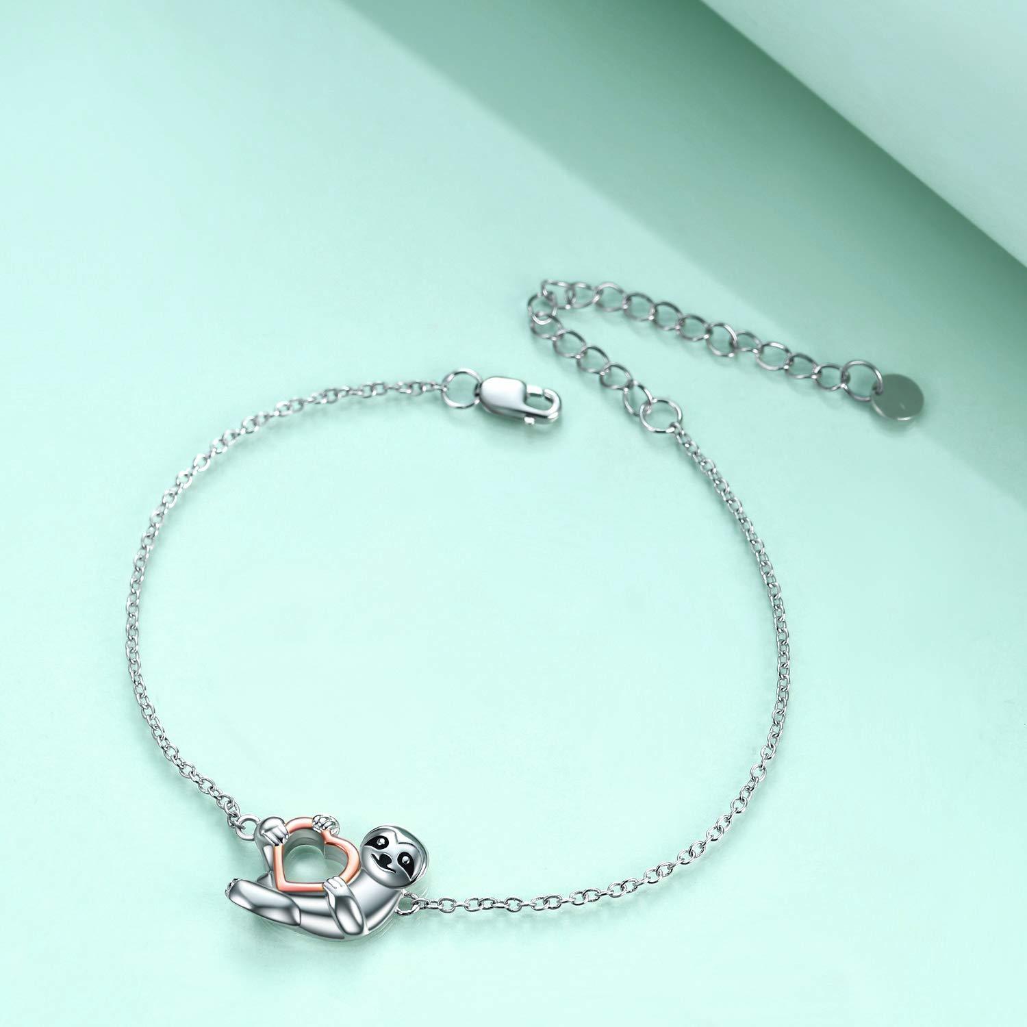 This adorable sloth bracelet is crafted from 925 sterling silver, featuring a heart-shaped sloth charm. Perfect for sloth lovers, women, and girls. Ideal as a gift for any occasion.