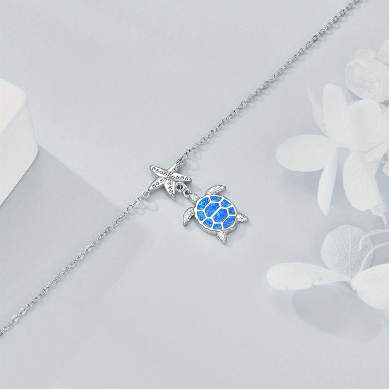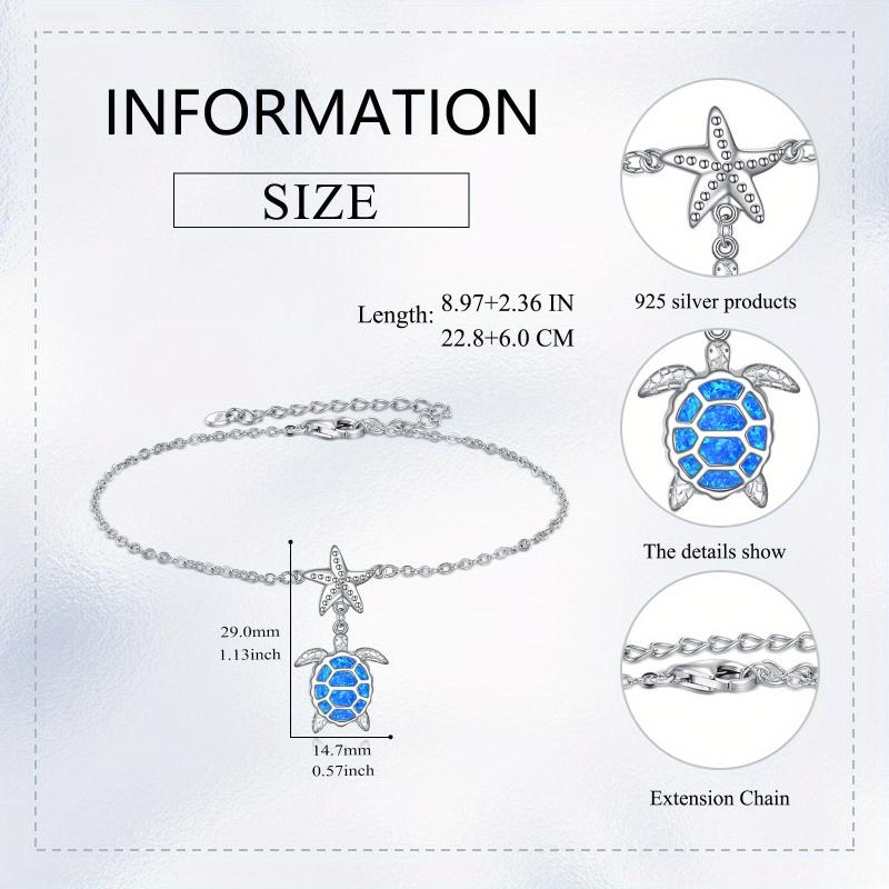 This elegant 925 pure silvery bracelet features charming beach turtle and sea star charms, making it a perfect accessory for any beach lover. The bohemian design adds a trendy touch to your outfit. It also makes a thoughtful gift for someone special.