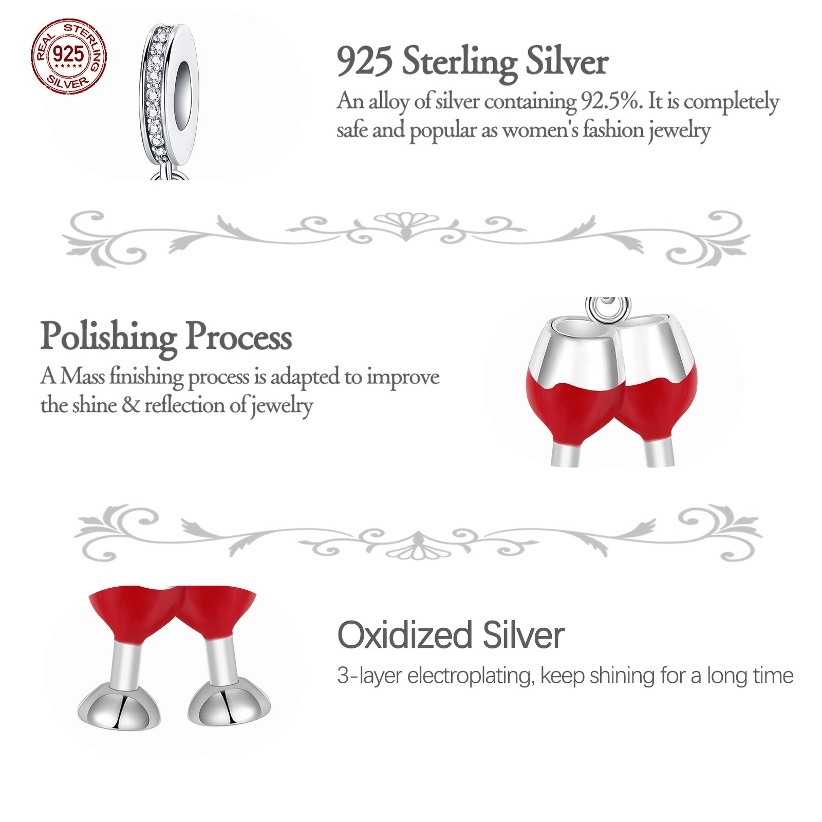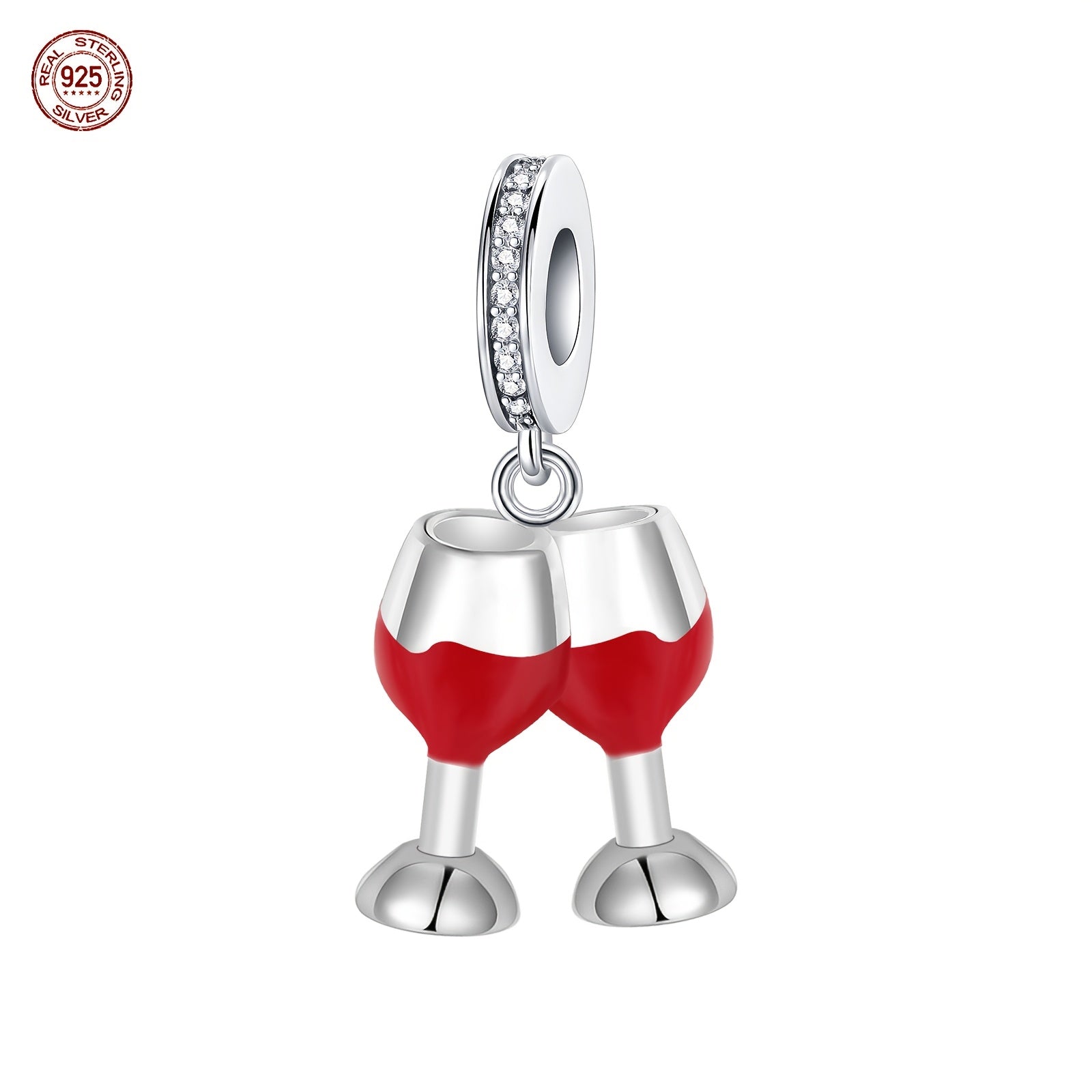 High quality 925 pure silvery red drink series wine glass dry cup bracelet. Perfect for original bracelet or necklace jewelry making. Ideal gift for Women's birthday or special occasion.