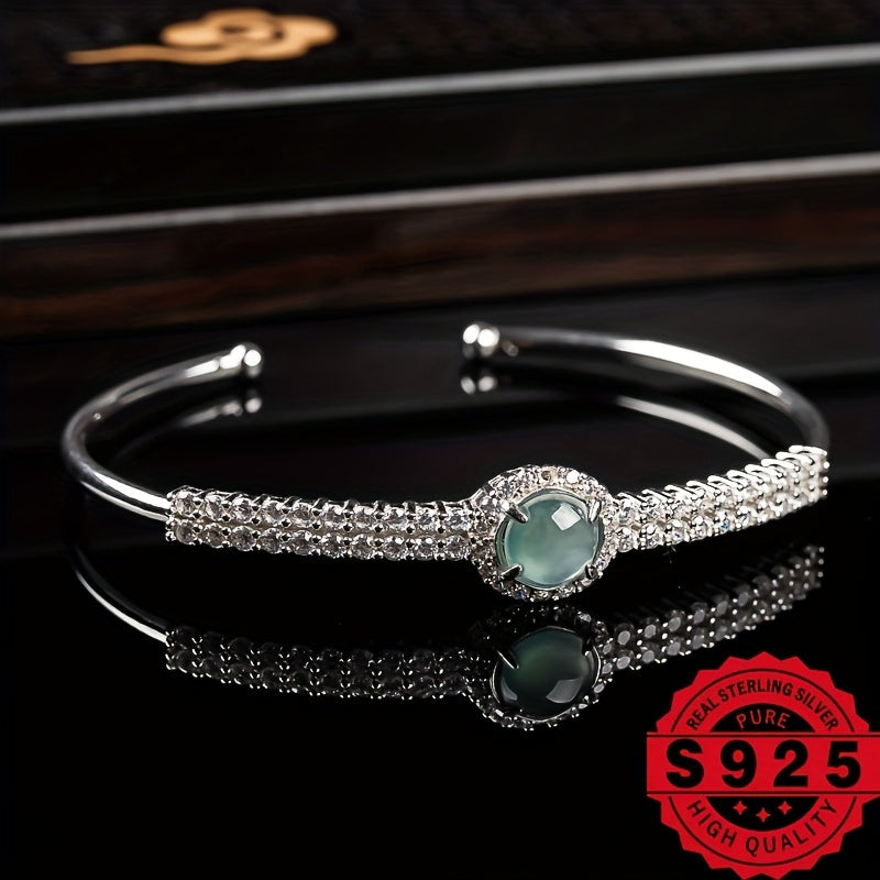 Elegant and stylish 925 sterling silver bracelet featuring natural stone with adjustable fit. This bracelet is perfect for any occasion and adds a touch of sophistication to your outfit.