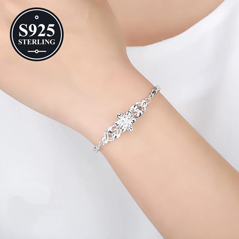 Delicate and elegant bracelet featuring intricate butterfly and floral design with sparkling stones. This low allergy accessory is perfect for any occasion and makes a great gift for Valentines, birthdays, or special events.