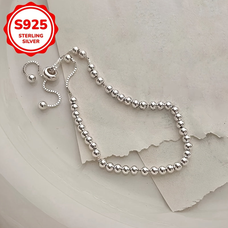 This fashionable bracelet features round beads and is perfect for daily wear or as a gift. Made from 925 sterling silver, it is a versatile and stylish accessory.